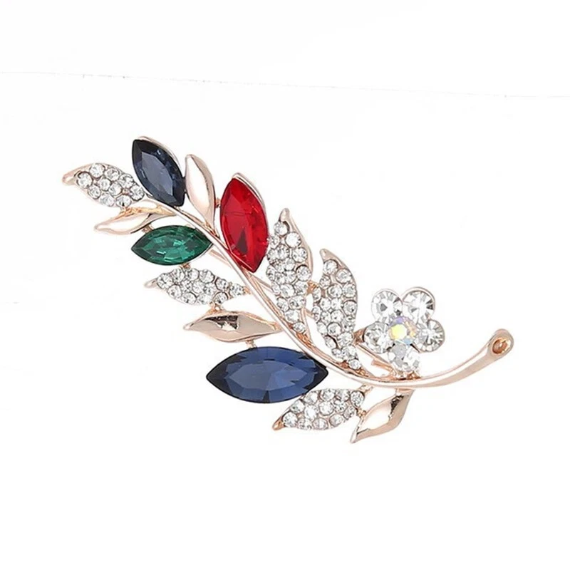 Creative Fashion Leaf Brooch Wedding Bouquet Corsage Crystal Brooch Accessories