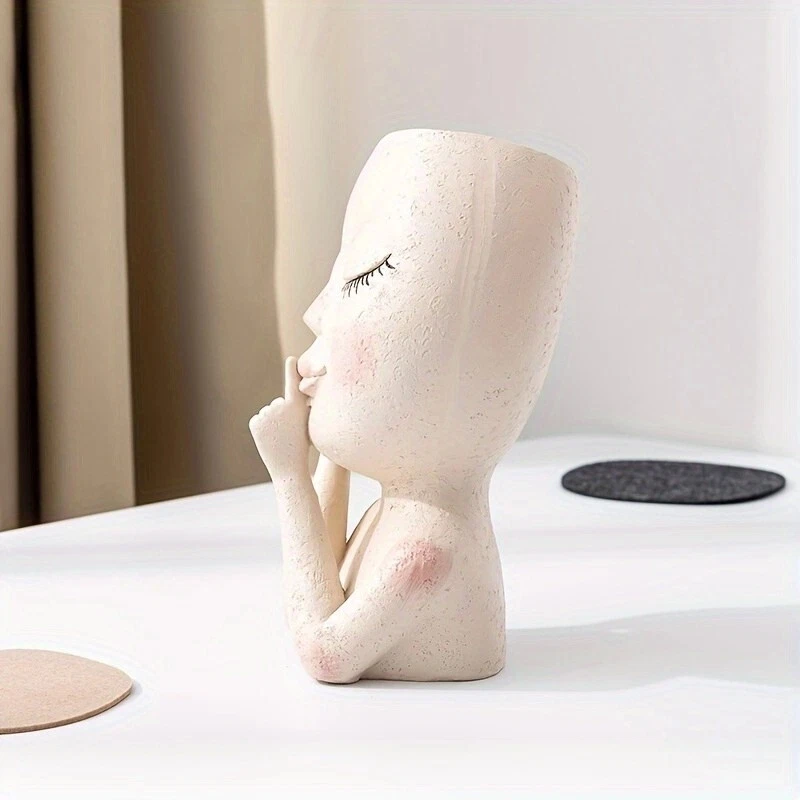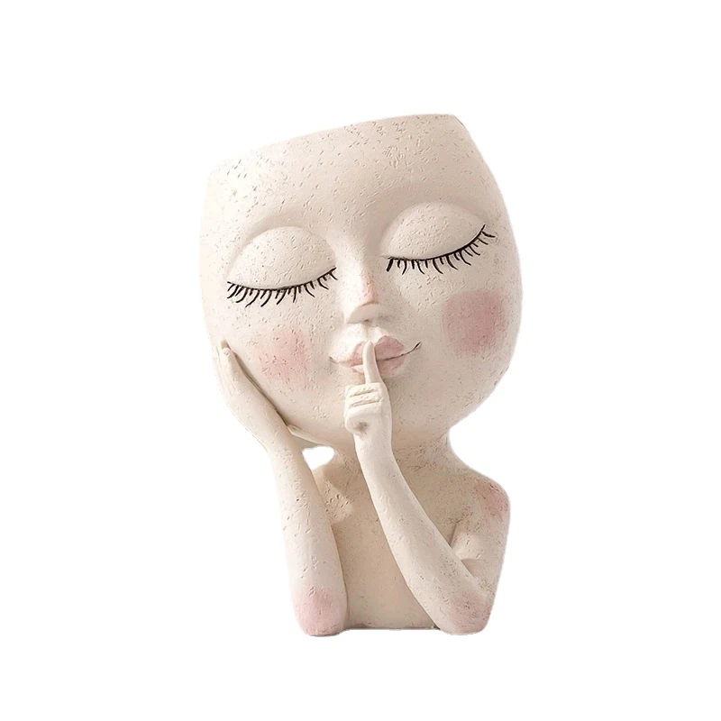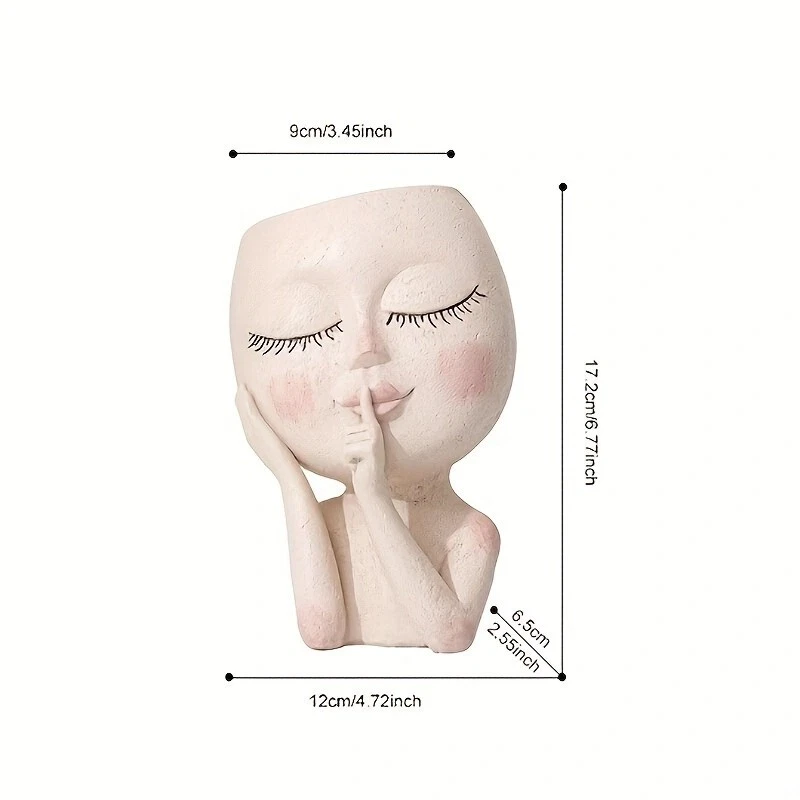 Face Planter Pot Description Color: White Material: Resin Process: Resin process Applicable Object: General Applicable Scenarios: Suitable for both indoor and outdoor use Product Features: Cute lady face design for a creative touch Ideal for succulent and other small plants Features a drainage hole to ensure proper water flow Perfect for garden, home, and balcony decoration Add a unique and artistic flair to your space with this charming face planter pot!