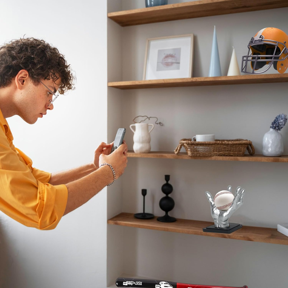 Abs Creative Hand-Shape Design: Breaking away from convention, the unique hand silhouette cradles each story-filled baseball as if caught by an invisible mitt. This stand doubles as a modern home decor art piece, infusing personality and vitality into your living space High-Quality Materials: The Baseball Holder uses precision casting techniques. Palm made of high-quality ABS, each 'finger' securely supports your treasures,and which ensures optimal protection against mold Scope of Application: Fit for Official Size Baseball, great for spherical objects within 9" (22.86cm) circumference. Without complicated installation, simply place your ball on top and you can freely move and showcase it to your friends, turn your baseball collection into a captivating exhibit Various Uses: Display Holder can be used not only for baseballs, but also for golf balls, billiard balls, tennis balls, ping pong balls, and other small balls, toys, etc. This is a great present for all your friends, college team fans, and all other sports fans Preserve Priceless Memories: Your ball is displayed on our hand-shaped baseball racks you can preserve the memories of every pitching and victory on the field. It encapsulates not just an object but a cherished memory and priceless sentiment Buy with Confidence: If you have any problems with our Palm-shaped display holder, please feel free to contact us, we are always doing our best to provide you 100% satisfaction service Product Description