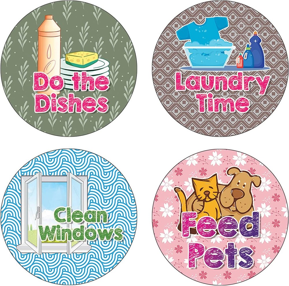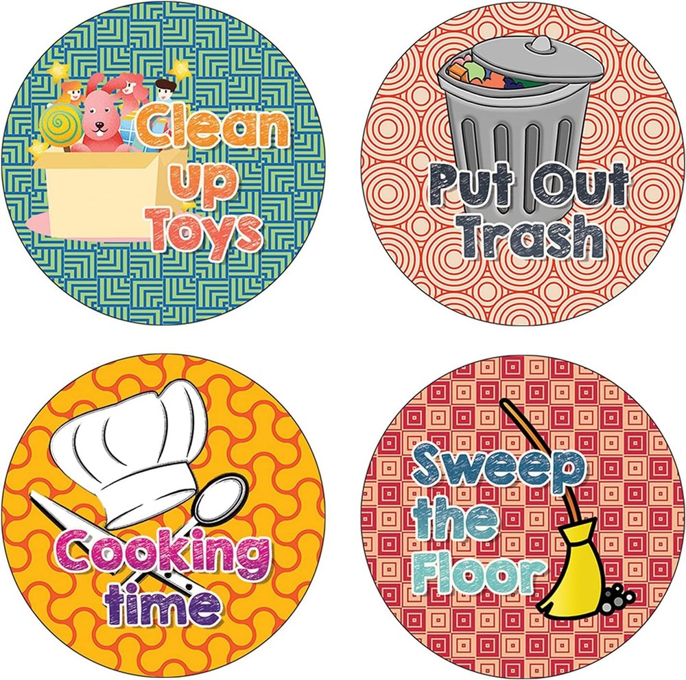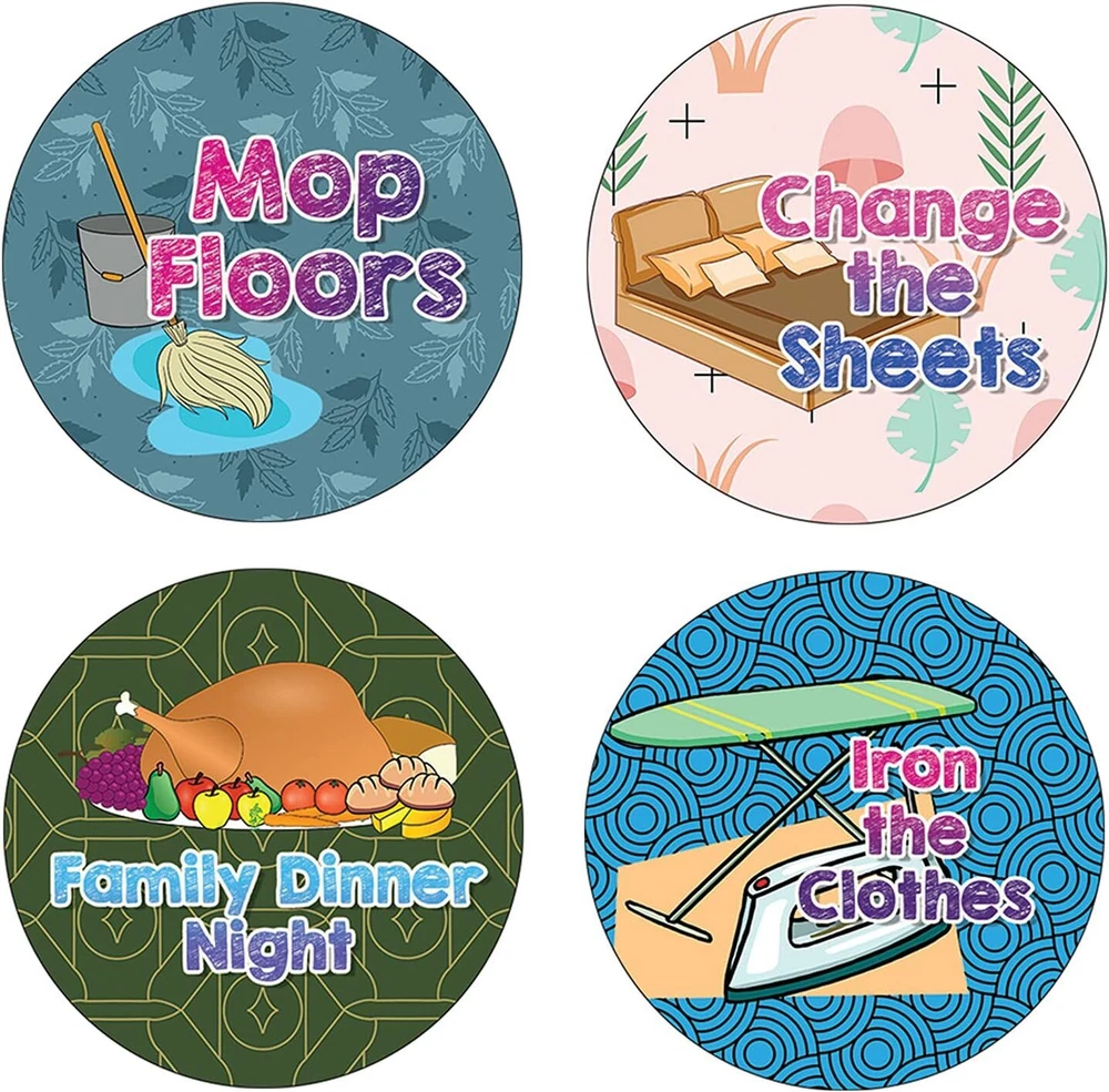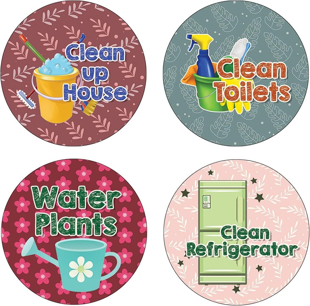 16 UNIQUE DESIGNS INSPIRING STICKERS FOR YOUR DIY PERSONALIZED DECORATIONS - These colorful and uniquely inspiring round shaped stickers are the best tool for DIY decoration and personalization of your belongings. GREAT STOCKING STUFFERS, SCHOOL CORPORATE TEACHING SUPPLEMENTARY MATERIALS, AND INCENTIVE GIFTS - Great rewards giveaways for Boys Girls, Kids, Teens, Children, Adults, Professionals. A perfect design to give during guidance sessions, classroom activities, school giveaways, birthdays, anniversaries, family day, and any other special occasions. MADE WITH DURABLE AND WATERPROOF MATERIALS - There is a lamination or coating to make the stickers high water resistant, and WILL NOT fade from the water. The stickers can stick it anywhere you like, and it sticks there and lasts a long time. A COLORFUL AND DECOR STICKER DECAL - Each sheet with 16 individual round stickers. There are 5 Sheets, with a total of 80 pieces of stickers. STICKER SIZE: 1.5 INCHES IN DIAMETER Creative Reminder Sticker -House Chores (5 Sets X 16 Designs) COLORFUL AND COLLECTION OF TEXT STICKERS • Well designed. • Very encouraging. • Self-adhesive. Creative Reminder Sticker -House Chores (5 Sets X 16 Designs) are super fun to collect; you can't have just one! That's why you will find a selection of stickers right here. Each package comes with different stickers in a variety of designs. Stick them here, stick them there, stick them everywhere! Everyone will love these self-adhesive stickers. These colorful stickers are perfect for any adults and these come with very inspiring messages and bright pictures. A fun, inexpensive way to add a decorative, notes, and stationery. Delight yourself with uplifting messages designs that are very encouraging. Creative Reminder Sticker -House Chores (5 Sets X 16 Designs) perfect for giveaways, behavior incentives, prizes! These stickers are acid-free, nontoxic, and safe for use on photos. This product comes with a 60 days money back guarantee. You can return them to us for a full refund.