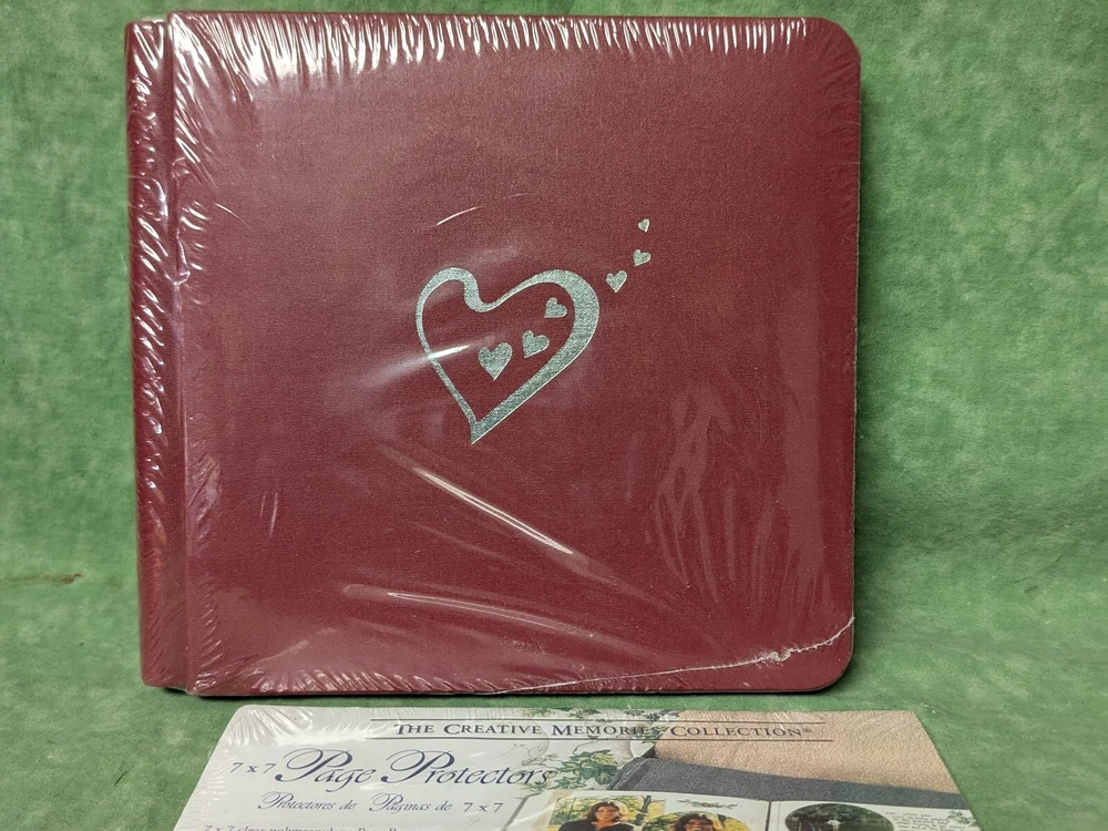 Great starter set! Creative Memories 7" x 7" album still in the original plastic wrap and never opened. Hard to find redheart embossed on the front. Also included is an unopened pack of page protectors. Mumbo Jumbo: all sales are final. No refunds or returns. All items are shipped insured. Should by some chance an item is broken in shipping, buyer will need to file a damage claim or repair claim with the post office. Insurance is purchased for that reason. Although breakage isn't anticipated, it can happen as I can't control the handling of items once in the possession of the post office. I do try to pack to ensure a safe delivery.