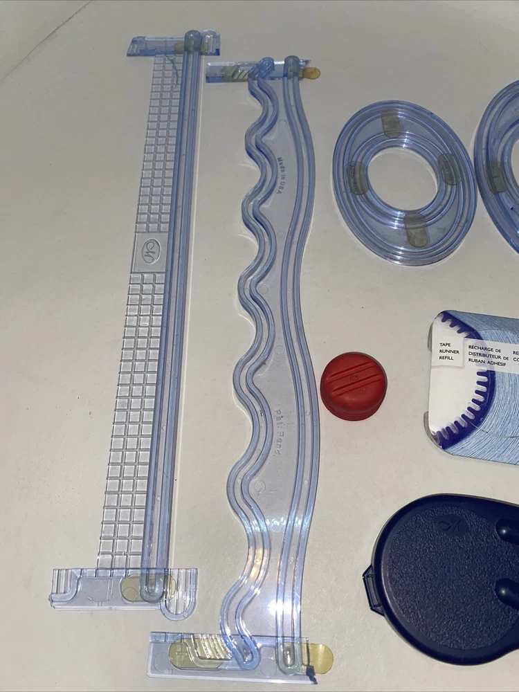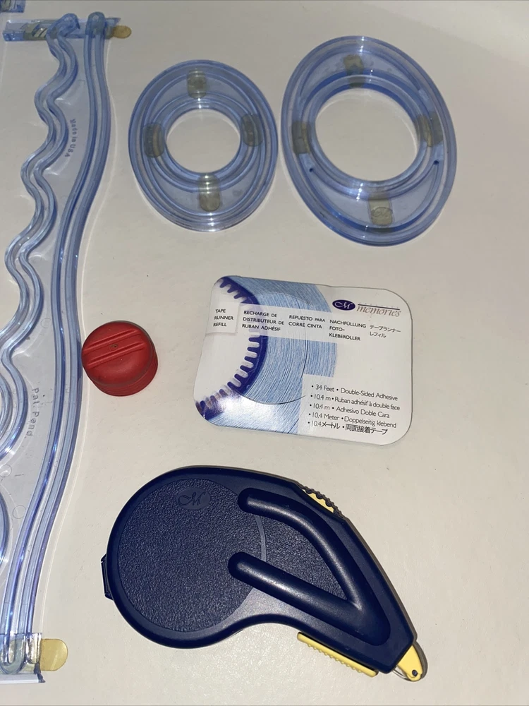 Creative Memories Custom Cutting System Lot- 1 Blade-Tape Runner With Refill. The tape runner is old. Seems to still be sticky. AS IS