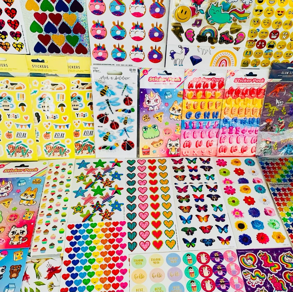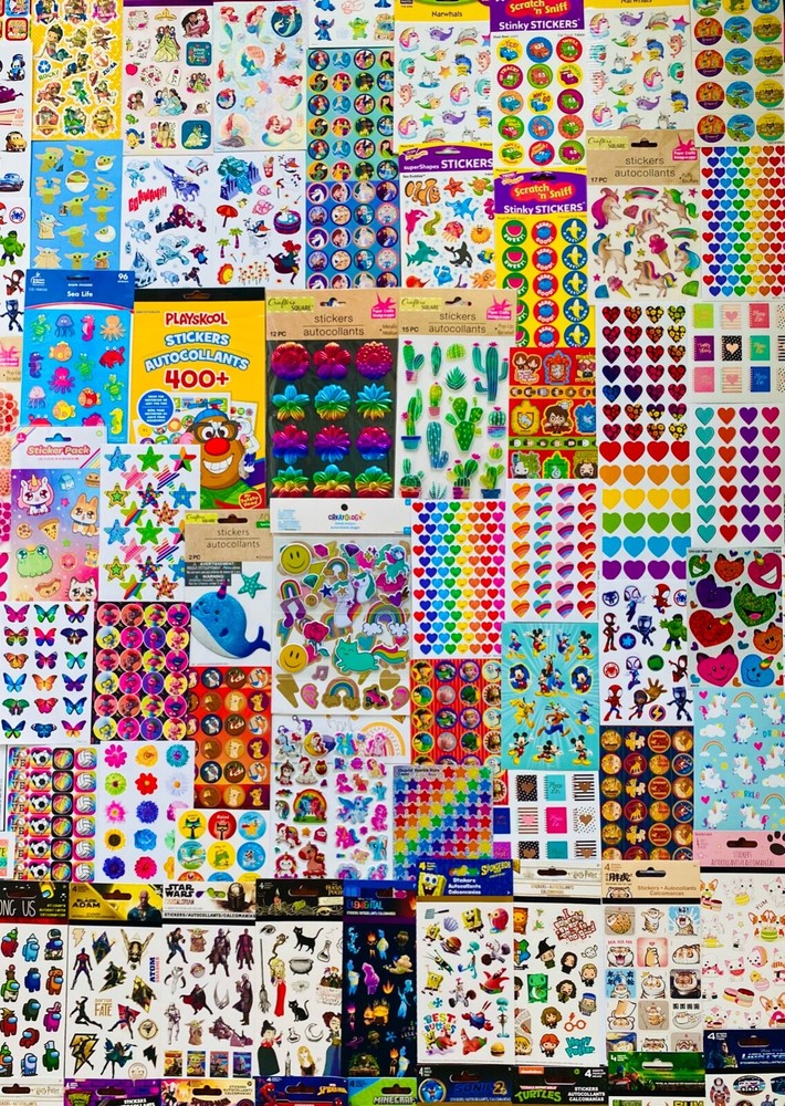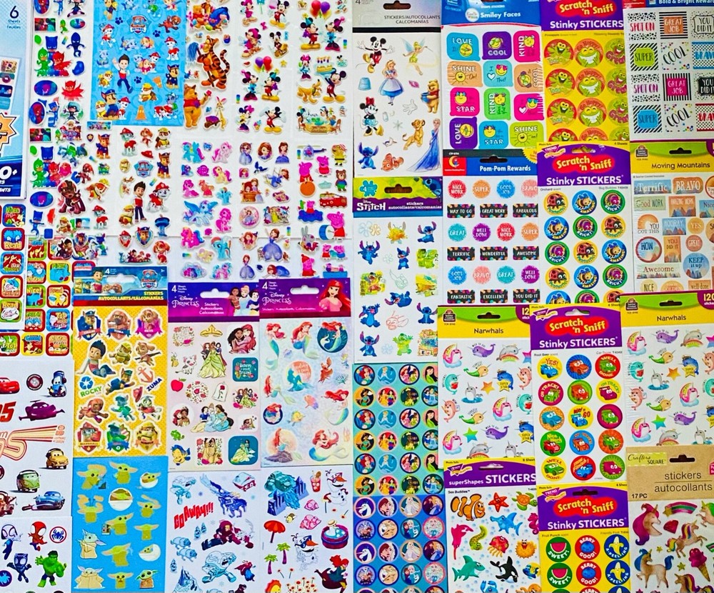 HUGE Mixed Sticker Lot | The Ultimate Kit | Qty. 1289+ Stickers | High Quality Only! Fun Assortment of Puffy, Scrapbook, Cartoons, Bubble, Pop Up Stickers Packs For Everyone! You will receive 30+ Sticker Sheets of beautiful colorful assortment. The Pack will include 1289+ Stickers overall! I have included a large variety of pictures of the assortment available. The pictures give you an idea of what you will be receiving. Please Note: You will not receive everything pictured. Please contact me with any special requests. This HUGE Variety of fun designs stickers can be used in parties, classroom, school and home, good for reward for students, potty training, adding inside a birthday card, game activities, entertaining toddlers, etc. Perfect Gifts for Kids & all Occasions: Can be given as a gift for kids, girls, boys, toddlers, teens, students, friends, and classmates, they will love it!
