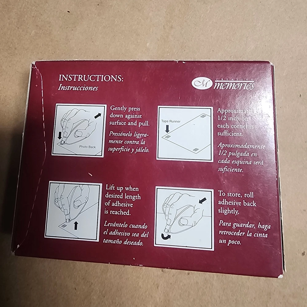Creative Memories Tape Runner - older style This is the runner that is more oblong shaped Includes 34 feet - double sided adhesive New and unopened - box may have marks or price tag residue