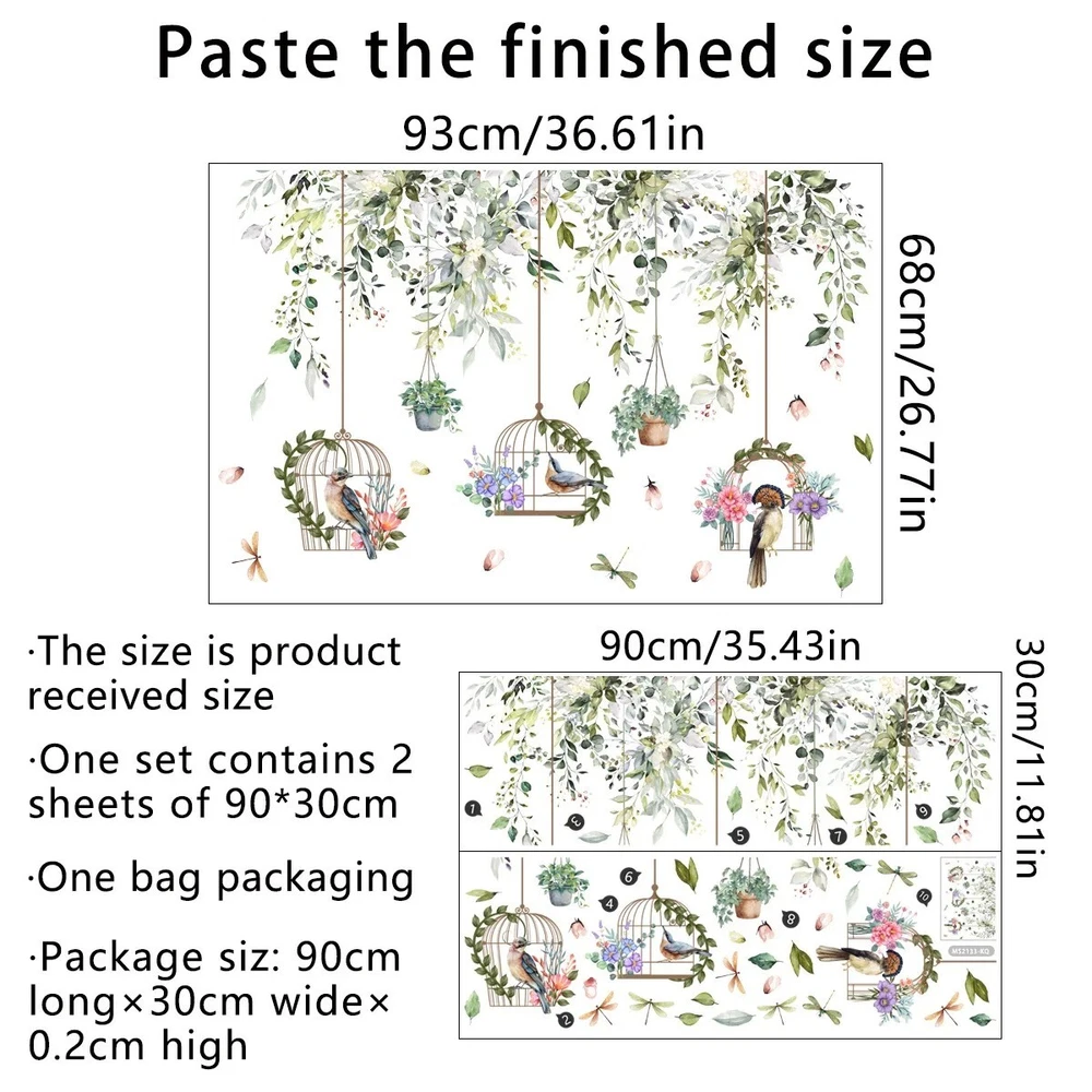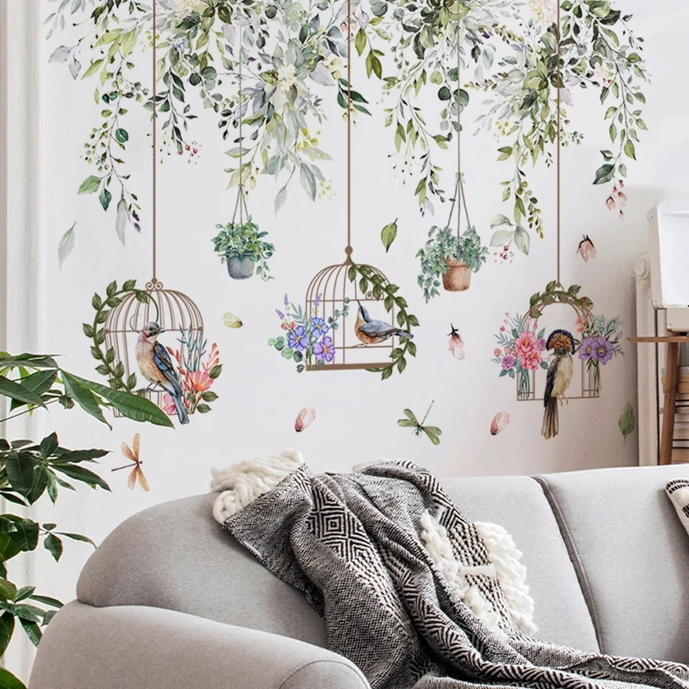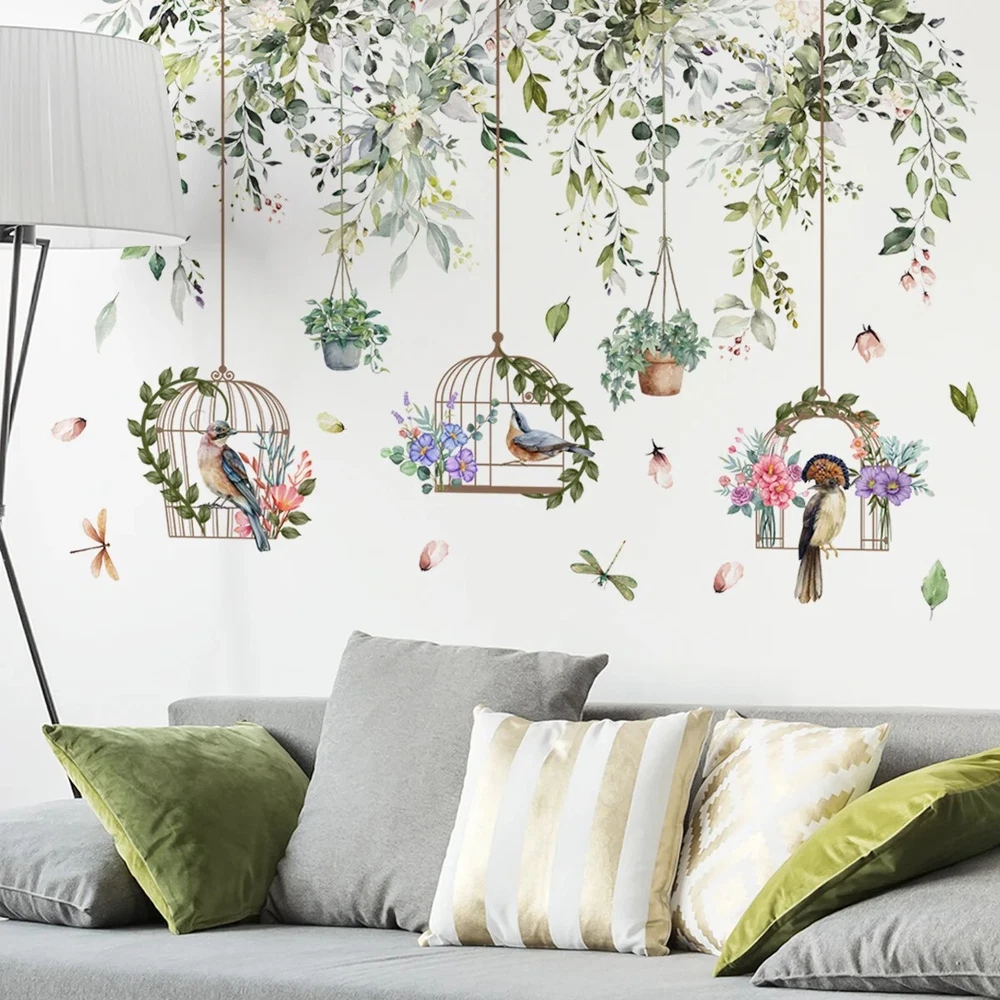 Creative Plant Vine Bird Cage Wall Sticker Bedroom Living Room