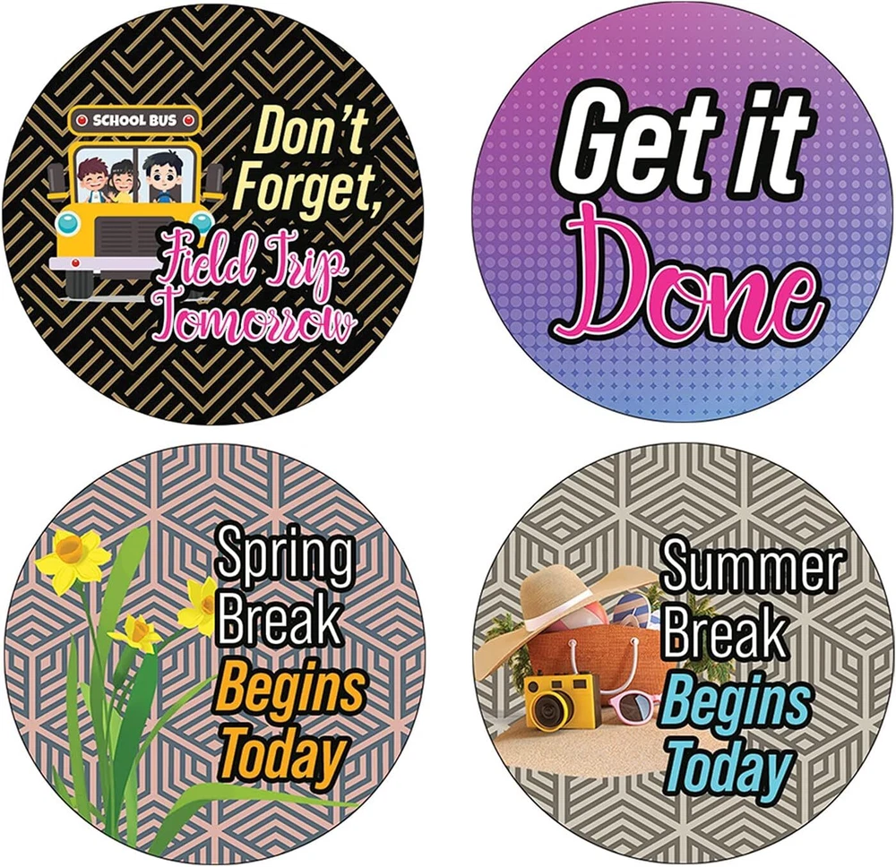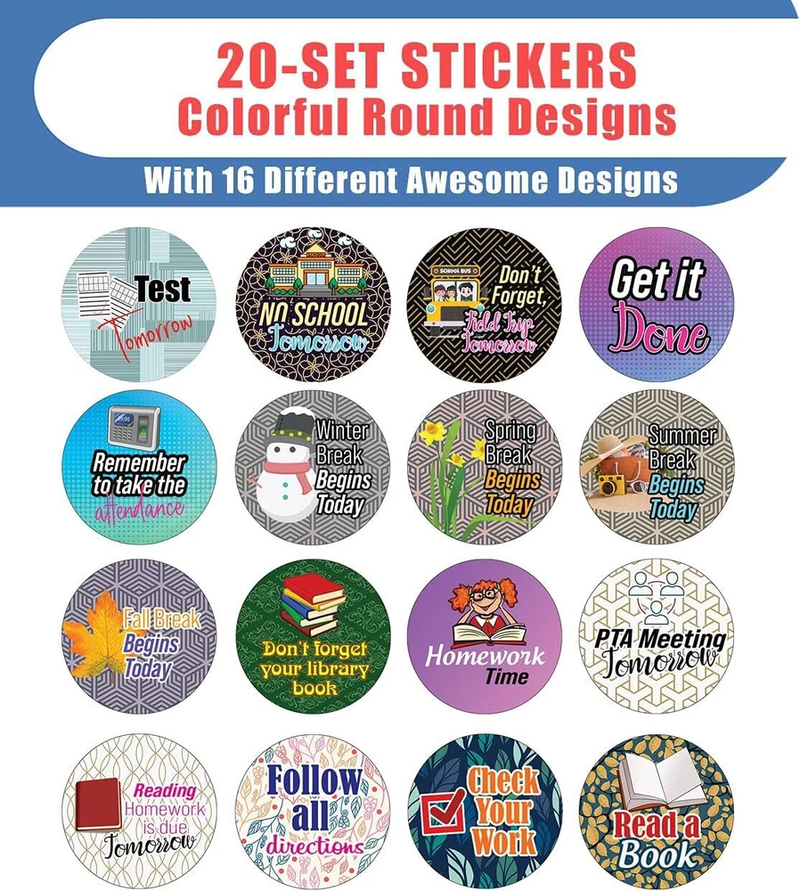 16 UNIQUE DESIGNS INSPIRING STICKERS FOR YOUR DIY PERSONALIZED DECORATIONS - These colorful and uniquely inspiring round shaped stickers are the best tool for DIY decoration and personalization of your belongings. GREAT STOCKING STUFFERS, SCHOOL CORPORATE TEACHING SUPPLEMENTARY MATERIALS, AND INCENTIVE GIFTS - Great rewards giveaways for Boys Girls, Kids, Teens, Children, Adults, Professionals. A perfect design to give during guidance sessions, classroom activities, school giveaways, birthdays, anniversaries, family day, and any other special occasions. MADE WITH DURABLE AND WATERPROOF MATERIALS - There is a lamination or coating to make the stickers high water resistant, and WILL NOT fade from the water. The stickers can stick it anywhere you like, and it sticks there and lasts a long time. A COLORFUL AND DECOR STICKER DECAL - Each sheet with 16 individual round stickers. There are 20 Sheets, with a total of 320 pieces of stickers. STICKER SIZE: 1.5 INCHES IN DIAMETER Creative Reminder Sticker -School (20 Sets X 16 Designs) COLORFUL AND COLLECTION OF TEXT STICKERS • Well designed. • Very encouraging. • Self-adhesive. Creative Reminder Sticker -School (20 Sets X 16 Designs) are super fun to collect; you can't have just one! That's why you will find a selection of stickers right here. Each package comes with different stickers in a variety of designs. Stick them here, stick them there, stick them everywhere! Everyone will love these self-adhesive stickers. These colorful stickers are perfect for any adults and these come with very inspiring messages and bright pictures. A fun, inexpensive way to add a decorative, notes, and stationery. Delight yourself with uplifting messages designs that are very encouraging. Creative Reminder Sticker -School (20 Sets X 16 Designs) perfect for giveaways, behavior incentives, prizes! These stickers are acid-free, nontoxic, and safe for use on photos. This product comes with a 60 days money back guarantee. You can return them to us for a full refund.