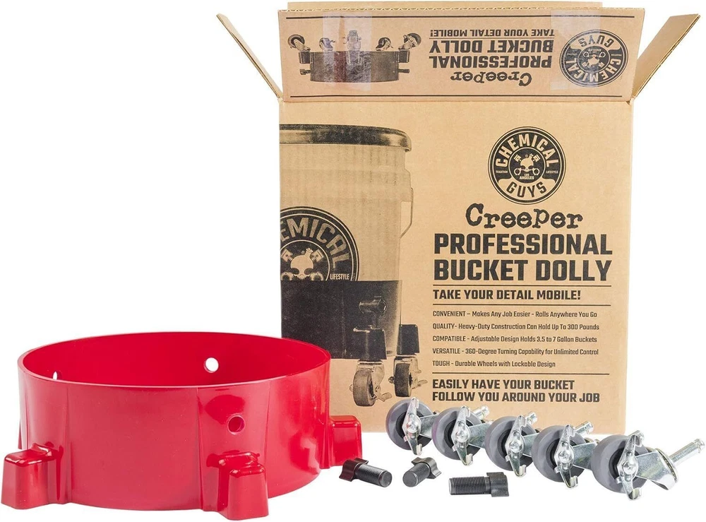 MOBILE DETAILING - Take your detailing game mobile. No more lugging heavy buckets; let them follow you. VERSATILE CAPACITY - Compatible with 3.5 to 7.5-gallon buckets up to 11" in diameter; detailing accessories designed for convenience. ROBUST CONSTRUCTION - Made of ultra-thick durable plastic, built to last and support up to 300 lbs. 360° MOBILITY - Features five swivel wheels for complete control, ensuring your bucket rolls smoothly without tipping. LOCK & STAY - Option to lock any or all casters, ensuring your bucket remains stationary when needed. Perfect for focused detailing tasks. Model Creeper Professional Bucket Dolly Item Weight 4.75 pounds Product Dimensions 18 x 16 x 6.5 inches