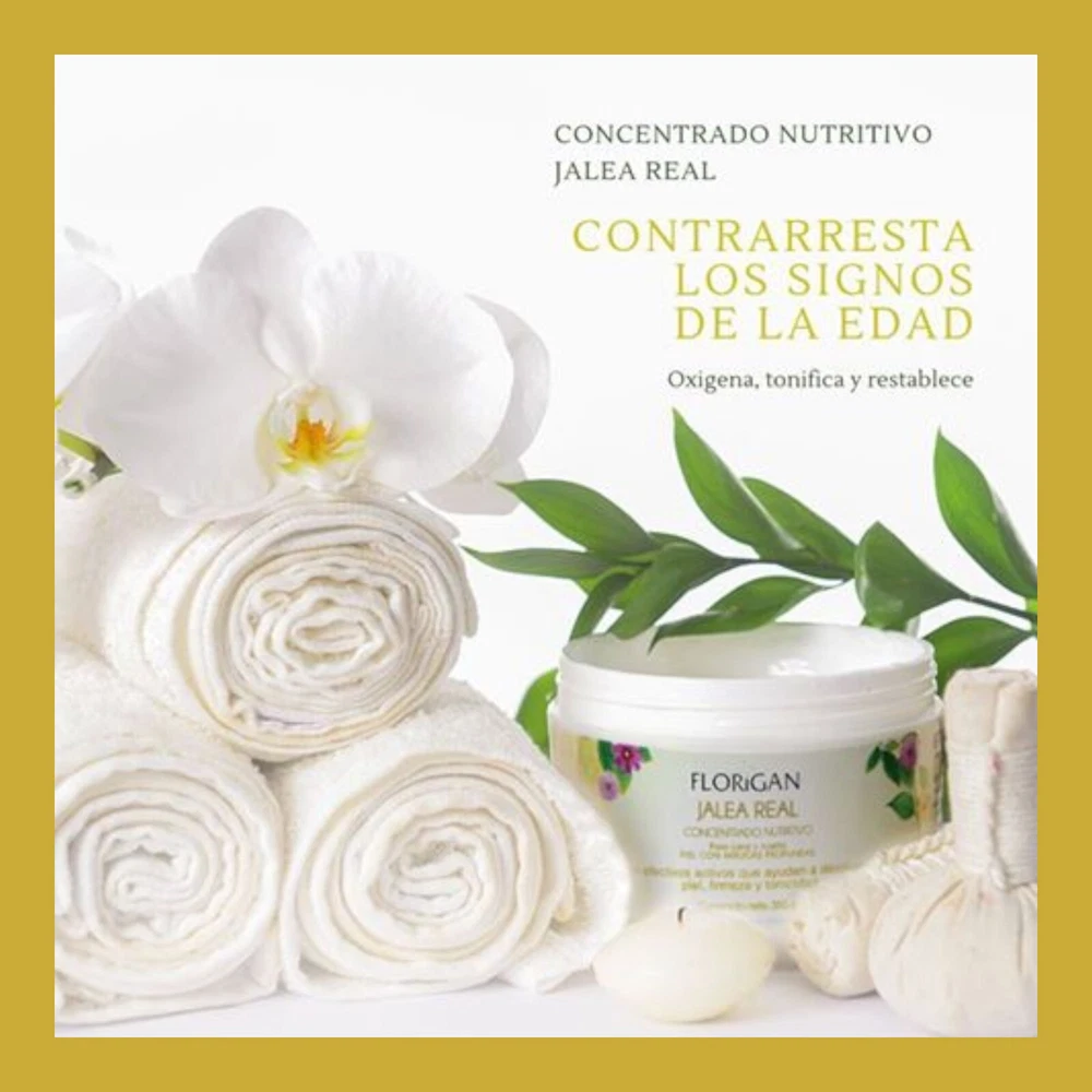 CREMA REJUVENECEDORA Placenta y Concha Nácar Cutis cansado y envejecido Protege y devuelve la humedad Ayuda a mantener la humedad en la piel y le proporciona elasticidad. Atenúa manchas y crea un tono uniforme. Desvanece arrugas en cuello, contorno de ojos, labios y frente. Difumina cicatrices. Previene el envejecimiento. 350g. Este fluido natural elaborado por las abejas, es considerado desde la antigüedad como un elixir para la juventud. Otorga vitalidad y nutrición a la piel y es muy efectivo para contrarrestar los signos de la edad. CONCENTRADO NUTRITIVO Jalea Real Piel con arrugas profundas Tonifica y restablece Crema auxiliar para desvanecer líneas profundas en rostro y cuello. Provee firmeza a la tez. Penetra rápidamente en la piel. Otorgándole hidratación, suavidad, oxigenación y un estado saludable. 350ml.
