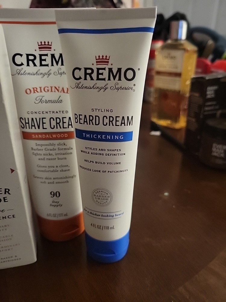 The Cremo Heritage Black Shave Kit includes a razor, refills, shave cream balm, beard thickening cream, and a jar of beard balm, providing everything a man needs for a smooth and comfortable shave. Their products are formulated for combination, normal, and dry skin types, with a luxurious cream formulation that leaves the skin feeling hydrated and nourished. The kit is animal cruelty-free and features a sandalwood scent for a relaxing shaving experience. Cremo's shave cream balm comes in a 6 oz capacity container ×2, making it a convenient and high-quality choice for daily facial grooming.