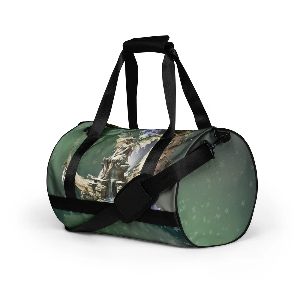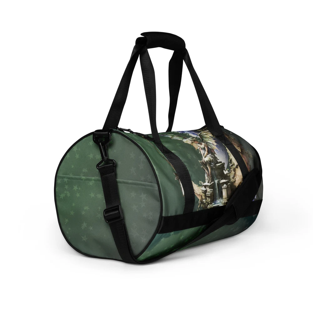 Ready to get your fitness on? Add some punch to pumping iron with this all-over print gym bag. Made from 100% polyester and sturdy, water-resistant fabric, this bag is fun meets function. And it’s got pockets! • 100% polyester • Fabric weight: 9 oz./yd.² (305 g/m²) • Capacity: 7.93 gallons (30 l) • Water-resistant and durable • Sturdy fabric with fusible backing to add firmness • T-piping for stability • Dual padded handles • Inside pocket for valuables This product is made especially for you as soon as you place an order, which is why it takes us a bit longer to deliver it to you. Making products on demand instead of in bulk helps reduce overproduction, so thank you for making thoughtful purchasing decisions!