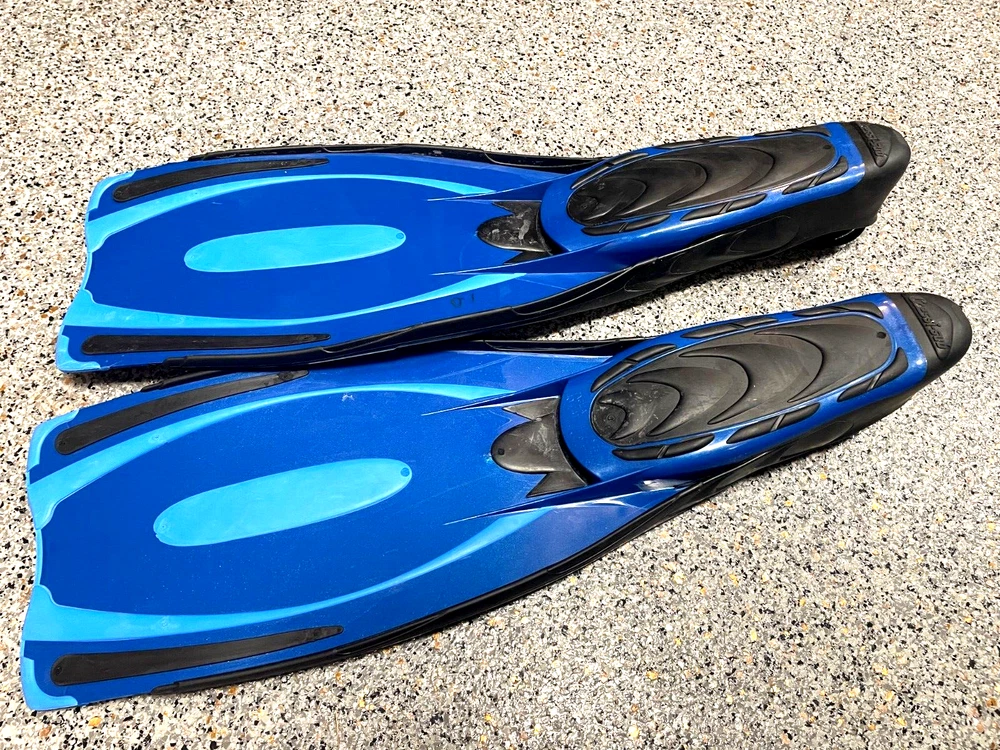 Cressi Reaction Pro Full Foot Fins Scuba Snorkeling BLUE Sizer 6 1/2 - 7 1/2