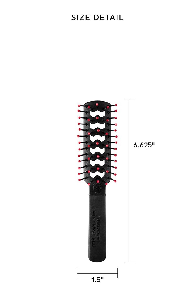 Cricket Static Free Mini Fast Flo Vent Hair Brush - Flo, black Product Details Quick Drying for On-the-Go: The Static Free Mini Fast Flo Vent Brush is expertly designed to dry hair quickly, making it an essential tool for travel and busy lifestyles. Its compact size fits well into any bag for easy, on-the-go styling. Maximized Airflow for Fast Styling: The strategically vented design enhances airflow from your hairdryer, reducing drying time while ensuring efficient styling. This mini blow-dry brush is ideal for quick touch-ups and full styling sessions alike. Eliminates Static and Flyaways: Even with its smaller size, this travel-friendly brush features anti-static bristles that remove static, leaving your hair smooth and flyaway-free, just like the full-size version. Comfortable Tangle-Free Bristles: The non-snag nylon bristles and stay-put ball tips glide effortlessly through your hair, ensuring a smooth, pain-free styling experience. The non-slip handle gives you advanced control during blow-drying and styling. Lightweight and Travel-Ready: Weighing only 1 oz, this mini vent brush is ideal for professional stylists and anyone who travels frequently. Proudly designed as part of Cricket’s iconic Static Free collection.