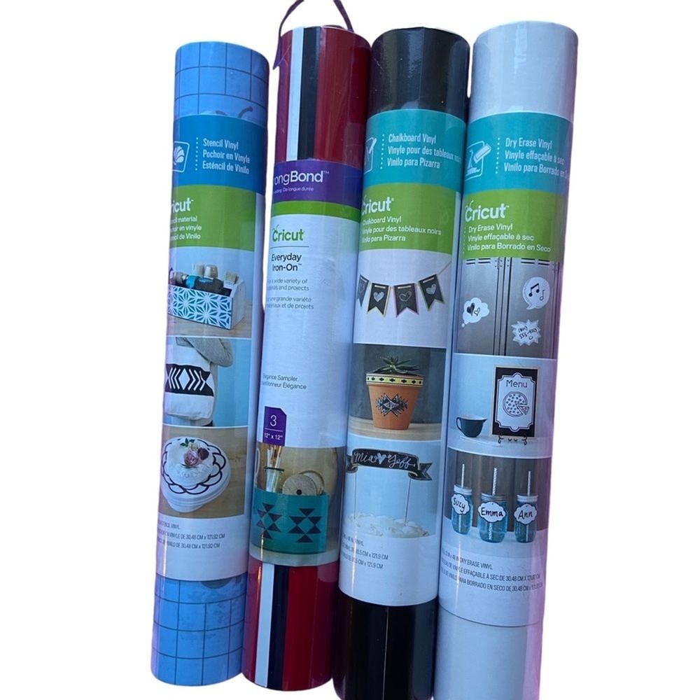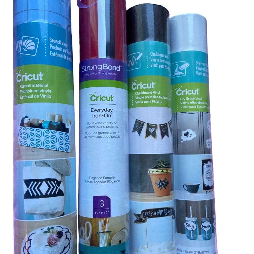 NWT Cricut Vinyl Bundle • Includes a variety of vinyl types for different crafting needs: • Stencil Vinyl: Perfect for creating precise stencils for painting or etching • Everyday Iron-On Vinyl: Great for personalizing clothing, accessories, and more • Chalkboard Vinyl: Ideal for creating reusable chalkboard surfaces • Dry Erase Vinyl: Transform any surface into a dry-erase board for notes or creative projects • All rolls are compatible with Cricut cutting machines and versatile for endless DIY projects