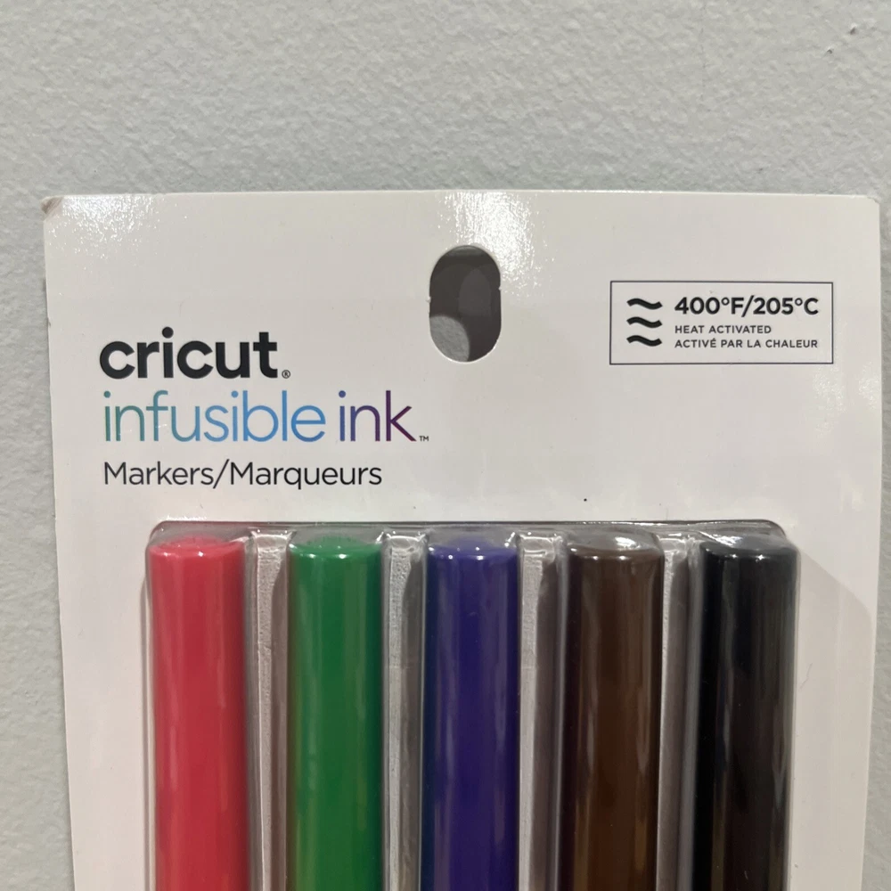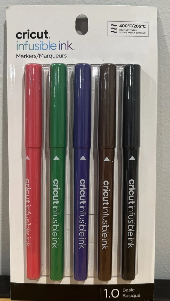 The Cricut Infusible Ink Markers Basic 1.0, 5 Pack is a set of craft markers in a variety of colors. Specifically designed for use with Cricut cutting machines and Cricut EasyPress 2, these markers provide vibrant and long-lasting color transfer onto compatible materials. Perfect for adding detailed designs and personalization to various craft projects.