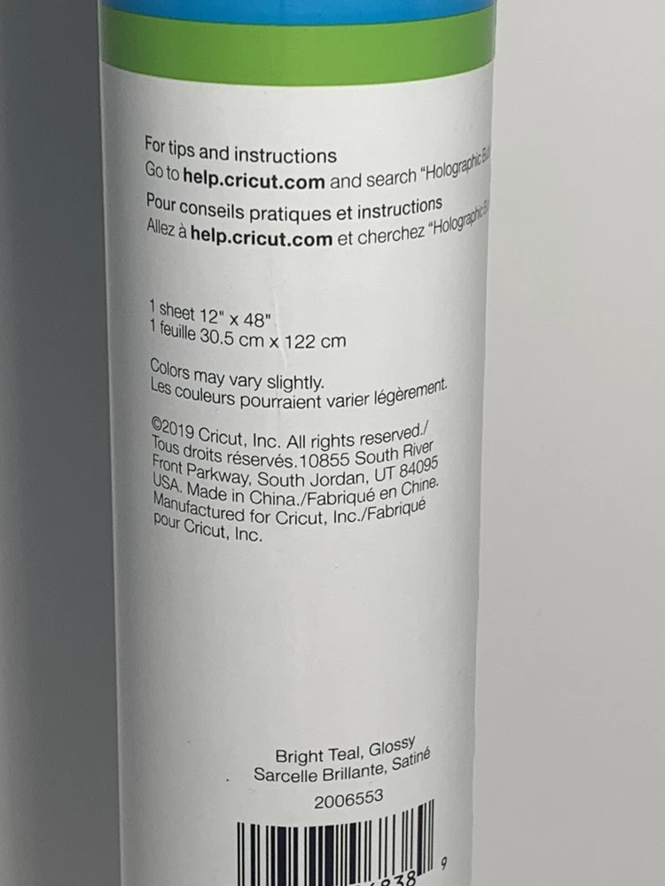 Item is Cricut Permanent Glossy Vinyl in holographic teal premium vinyl. 1 sheet. Items are carefully inspected and sealed after photos. Please note, item measurements are approximate and in the photos. We cannot check additional measurements or details for you. Colors remain vivid, we store our items in a smoke free environment If the item is pre-owned, it's cleaned per eBay standards. We do not use any freshener or scents. Shipping and Return Details We ship daily so that you receive your item quickly. I have a 30 day return policy. Please feel free to ask any questions you may have. I try to answer as quickly as possible.