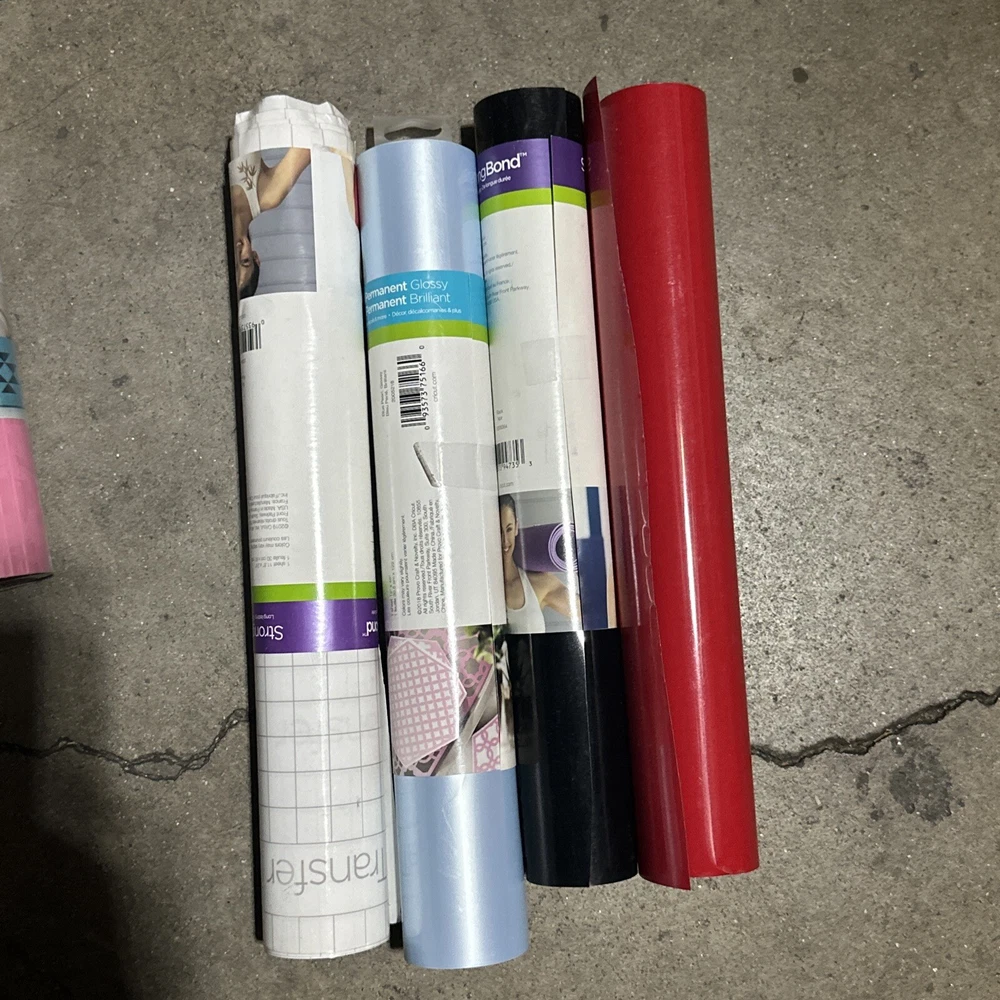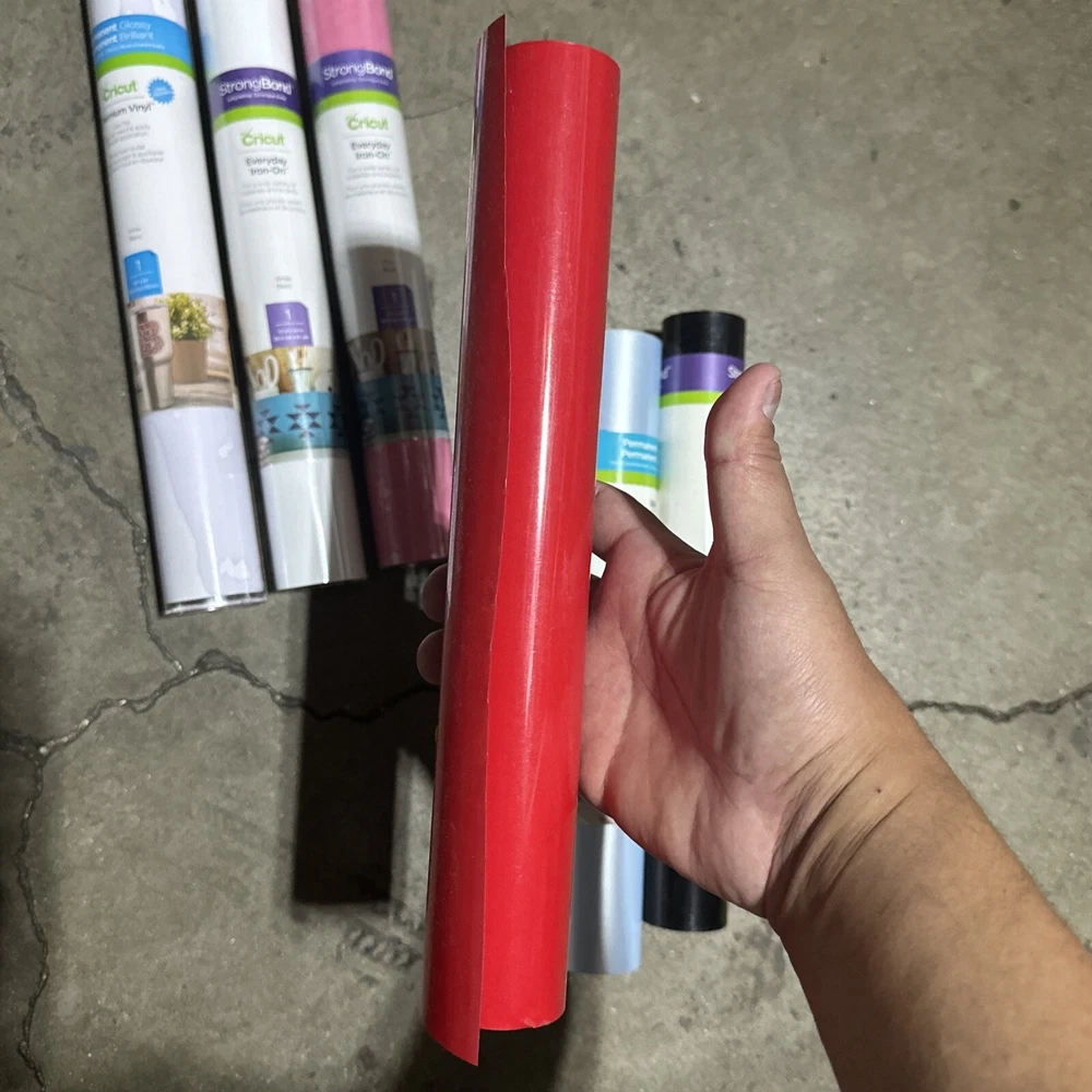 This lot of 7 rolls of Cricut Strong Bond Everyday Iron On premium vinyl is perfect for all your crafting needs. With 3 rolls being new and 4 rolls being lightly used, you'll have plenty of material to work with. This strong bond vinyl is perfect for creating intricate designs and patterns for your scrapbooking and paper crafting projects. The Cricut brand is known for their high-quality crafting products, and this vinyl is no exception. The rolls are in a convenient roll format, making them easy to work with and store. Whether you're a seasoned crafter or just starting out, this lot of Cricut Strong Bond Everyday Iron On vinyl is a great addition to your collection.