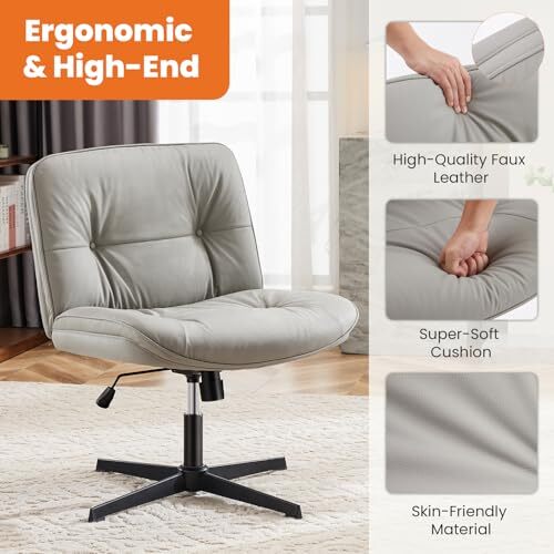 Return Policy Fast Delivery Trusted seller Criss Cross Legged Chair, Armless Office Desk Wide Seat No Wheels, Swivel Height Adjustable Comfy Computer Task Seating Modern Home Room Product Description 【Adjustable Comfort】The seat of armless desk chair can be rotated 360°. After turning the knob under the seat cushion, the seat can be swung back at 22°. This wide office chair is perfect for home office, living room, bedroom, powder room, study etc. 【Luxurious & Elegant】This chair seat cushion and backrest filled with high-density sponge, combined with ergonomic structure, and made with premium PU leather, it will bring you a more comfortable sitting feeling and are not easy to deform. Also make the room looks modern and luxurious. 【Seat Size】The armless chair overall size 26.2" x 26.8" x 36.8", Seat height can be adjusted to 33.1-36.8 inches according to preference. The seat width is 26.4”. Weight 28.7lbs. The U-shaped seat design and huggable backrest structure reduce pressure on the hips. 【Load Bearing】 This office chair metal leg design, supports up to 300lbs. Wheel-less construction of this leather office chair also gives it a stable frame with a balanced center of gravity and it’s not easy to slip. 【Easy to Assemble】This desk chair with no wheels can be easily installed according to our provided installation video. Follow the steps and you can finish the assembling with this cross legged chair quickly. Shipping Returns Payment Shipping Shipping is FREE to all addresses other than APO/PO boxes in the lower 48 states. All our stock ships from US-based warehouses. Shipped via USPS or UPS (depending on location and package weight) Unless stated otherwise, all orders will ship within 24-72 hours of your payment being processed. Check our feedback to see the great reviews of FAST shipping we offer. Returns Seller does not accept returns Payment We currently accept payment via eBay managed payments only. Once payment is cleared, we will dispatch your shipment within 1-3 business days. Please refer to the "Shipping" tab for more information regarding shipping speed to your destination.