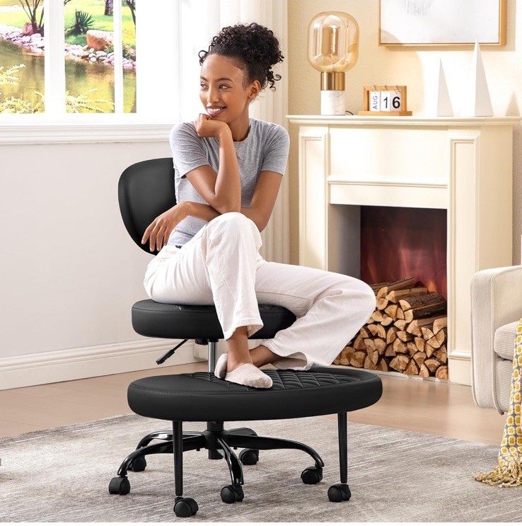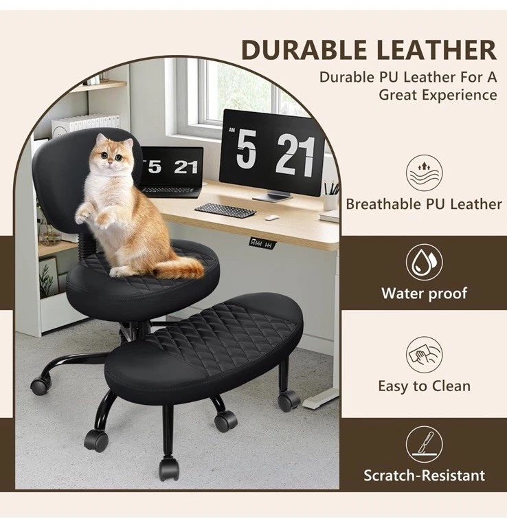 some scratches on the gas lift please see picture with the red arrow Ergonomic Cross Legged Office Chair with Wheels - Adjustable Height for Meditation, ADHD Desk & Yoga - Wide Criss Cross Design with Lumbar Support, Kneeling Chair - Black • Versatile Seating Positions for Home, Office, and Gaming: Our cross legged chair is perfect for those who prefer sitting in various positions like cross-legged, squatting, or kneeling, providing comfort and flexibility for yoga enthusiasts, meditation practitioners, and active sitters • Active Sitting Chair for Fidgety Sitters: Designed for those with ADHD or needing frequent position changes, this ADHD desk chair encourages active sitting to engage your body. Whether you're in the office or using it as a meditation chair with back support, this chair helps reduce discomfort and prevent fatigue • 360-Degree Rotating Footrest: Enjoy unmatched convenience with our innovative footrest that rotates a full 360 degrees. This allows you to effortlessly adjust your posture without shifting the chair. Experience enhanced comfort and support with every movement • Ergonomic Lumbar Support: This ergonomic office chair cross legged features a fixed backrest to provide consistent lumbar support, encouraging healthy posture during work or meditation. Its ergonomic design reduces lower back strain, even during extended sitting periods, making it a perfect meditation chair or office chair • Durable and Easy to Maintain: Frame of the cushion made of FSC-Certified wood. Made with excellent materials including a sturdy steel base and durable casters, this criss cross chair is built to last. The soft PU leather seat is water-resistant and stain-proof, making it comfortable and easy to clean • Modern Design for Versatile Use: Combining modern style and functionality, this office chair for cross legged sitting is perfect for home offices, gaming setups, or meditation spaces. Its sleek, minimalist design fits any environment while supporting cross-legged office chair users with ergonomic comfort • Easy Installation and Worry-Free Aftersales: It can be assembled with the simple tools that come with packing. You can easily complete it in about 15 minutes according to the English instructions. Any problem can be solved by contacting our after-sales service