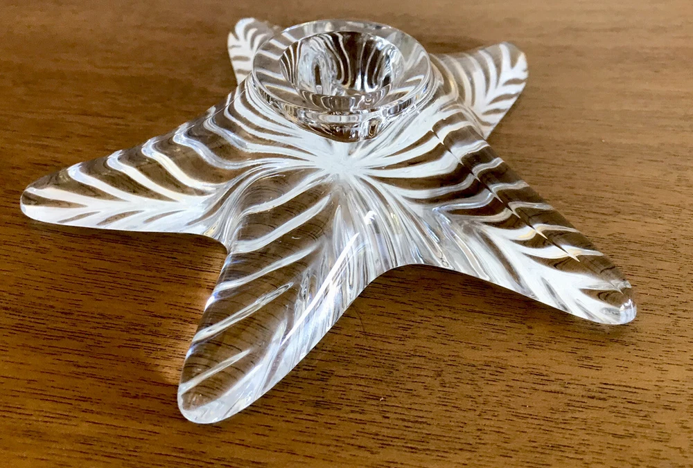 Crystal Candle Holder Please check out all of the pictures.. This offering is for a Cristal d'Arques Boutique starfish single taper candle holder. Nice weight and design. This piece measures 5.5 - 5.75 inches wide and stands 1.25 inches tall. Holds a standard .75 inch taper candle. Original packaging is not available for this item. Comes from a smoke free home. Please read condition comments above and review all of the images provided. Also remember that we will combine your auction wins to save you on your shipping charges. All items are to be considered pre-owned unless noted otherwise. Happy Bidding! NOTE: All pictures have been taken in outdoor natural light whenever possible. Please let us know if you need additional information or photos. Please allow us 24 hours to respond to your request. All inquiries are answered promptly. NOTE: We will combine all items into one shipment to save you $$$ on your shipping costs!!! We provide as much item information/condition as possible. We, by no means are experts - just curious shoppers and sellers. If we list something incorrectly please let us know - we greatly appreciate your knowledge. All items should be considered "Pre-Owned" unless stated otherwise. We take pride in our packing and double box whenever needed. Additionally we use bubble wrap and tissue to insure your auction item arrives to you safely. This is an auction so please read all print and review all photos prior to bidding - once again your questions are welcomed. International bidders please note that your shipping charges do not include any duties or tariffs your country may impose. If you have questions regarding these fees please contact your local Post Office. Additionally, US tracking only includes information within the USA. Please make sure your mailing address is correct as we ship to the exact address provided. Thanks! Thanks for looking and Happy Bidding!!