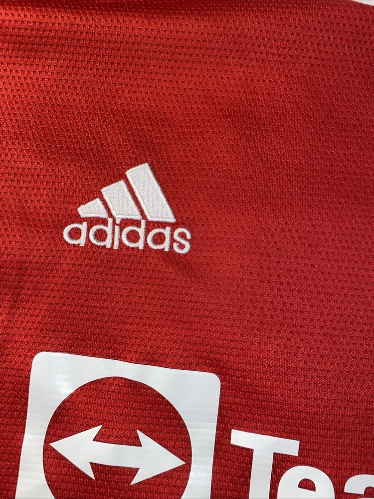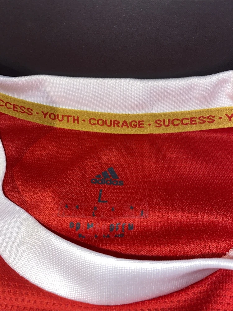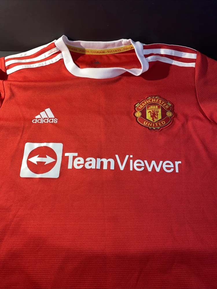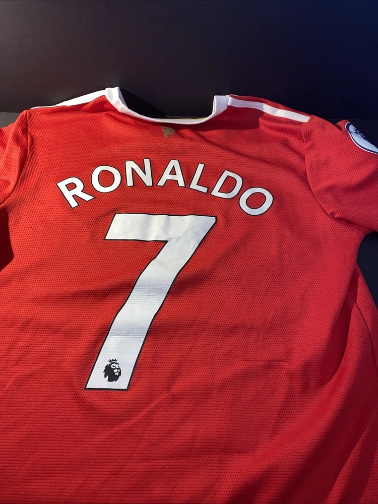 Show your support for Manchester United and one of their greatest players of all time, Cristiano Ronaldo, with this officially licensed Adidas jersey. The red jersey features the iconic number 7 and is perfect for any fan or collector. The size is a men's L and it is made for soccer enthusiasts who love to wear their team's colors with pride. This jersey is a must-have for any fan of Ronaldo or Manchester United, and it is sure to be a conversation starter whenever you wear it. Flaws shown in photos