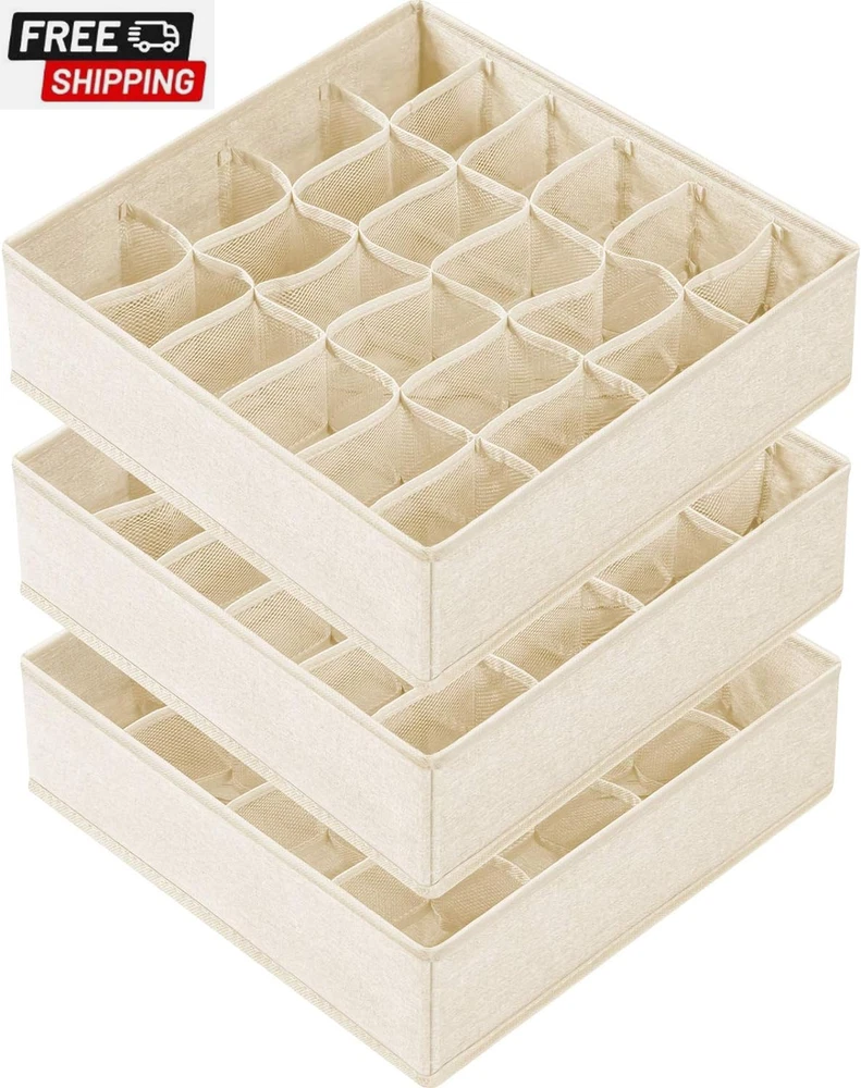 Criusia 3 Pack Sock Underwear Organizer Dividers, 64 Cell Drawer Fabric Foldable Cabinet Closet Storage Boxes for Storing Socks, Underwear, Ties (16+24+24 Cell, Gray) Tear-resistant fabric with PP board 【VERSATILE & SAVE SPACE】Featuring with 64 slots in all, this 3 pack drawer organizers are perfect for you to organize sock, ties, belts, underwear, lingeries etc. Easily accessible to see the pattern and color to choose quicky the right combination for your work day. 【DECENT SIZE & UNIQUE DESIGN】 You will receive 3 set cabinet organizers, each mesures 12.5"x12.5"x4" (32x32x10cm). Two of the boxes have 24 medium cells, one of them has 16 large cells for storing winter/athletic socks, small ornaments etc. Color: Gray. 【PREMIUM QUALITY】 Made of durable PBT fabric and delicate stitchings, the storage organizers resists to dust, moisture and tear than non-woven cloth. And the high-density PP insert boards is sturdy and resists to bend, deform or crack. The mesh pocket squares are breathable and help the air circulation. 【EASY TO ASSEMBLE】 The 3pcs collapsible sock storage boxes dresser drawer organization set are lightweight and you could fold or unfold them quickly with the zip on bottom. These organizer boxes can be used for closet, bedroom, shelf, bathroom, wardrobe, chest of drawers, under bed storage, desk, bookshelf, nursery, office. 【WASHABLE】 Our foldable sock drawer organizers are easy to maintain. Rinse with water then air dry. Product Description Criusia is professional at storage and organization Criusia Drawer Organizers are a sophisticated, well-designed solution for keeping lingerie, underwear, socks and accessories organized, visible, accessible and protected. Perfect for use inside drawers or open spaces like countertops or shelves. Color : Grey Perfect gift for Mother's Day, New semester, Christmas, Thanksgiving day, Housewarming. 3 Pack Versatile Sock Underwear Organizers with 64 Cells Keep organized & Easily accessible If you’re not a fan of larger compartments to keep things separated, our 3 set sock and underwear organizers are designed with 64 individual slots to ensure everything is in plain sight. With classic grey color, those closet storage boxes can go well with any decorations in your bedroom, bathroom, office. Concepted with 2 Sizes of slots, those closet storage boxes are ideal for storing different kinds of socks, underwear, scarves, gloves, ties or small ornaments etc Will not be easy to tear, bend, and others Dimension: 12.5"x12.5"x4" (32x32x10cm). 2 Pack 24 Cells : Each slot measure 2.1"x3.15" (5.3x8cm) 1 Pack 16 Cells : Each measures 3.15"x3.15" (8x8cm) GREAT WORKMANSHIP FOR LONG-LASTING USE Breathable Slots The mesh pockets help avoid the lingering smells especially when you store your socks in the enclosed space for a long time during wet days or summer. Durable Fabric Made of durable PBT fabric and delicate stitchings, the storage organizers will not be easy to tear than non-woven cloth. Sturdy Design Our underwear organizer drawer dividers are more sturdy and durable with high-density PP insert boards, and will not be easy to bend, deform or crack. Smooth Zipper The sock organizers are easily collapsible with the zipper on bottom. It will not take much space for travel, your RV or student dorm. EASY TO ASSEMBLE & EASY CARE ASSEMBLY INSTRUCTIONS: You only need to unzip the bottom zipper to easily fold or unfold those storage boxes. Lightweight and convenient to use. CARE INSTRUCTIONS: Wipe those foldable drawer dividers with a clean damp cloth. STANDARD SIZE TO FIT PERFECTLY WITH DRAWER, CLOSET, CABINET, DRESSER, SHELF... underwear organizer drawer divider cabinet organizer storage boxes for shelves Shipping Fast shipping is very important for us. Our standard US shipping service is FREE. Your order will be shipped within 2-3 business days upon full payment received. Your order will be delivered within 2-3 business days after the handling time. We only ship to the confirmed PayPal address. We reserve the right to cancel any order for any reason at any time. We are not responsible for undeliverable addresses. Returns and payment We offer a 30 days return policy from checkout winning date. We allow only PayPal as payment method FeedBack Your feedback very important to us, after you get your package and you are satisfied with our service please leave us positive feedback If you have any problem with your order / any questions please before leave any type of feedback For any questions, using eBay contact system Please visit our eBay store to check out other items for sale! Thank you for shopping at our store.