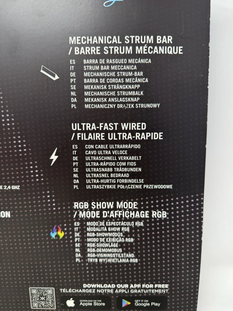 Brand new See pictures Features & details OFFICIALLY LICENSED BY MICROSOFT - Compatible with Xbox Series S|X, Xbox One, PC, PC handhelds, Android devices, including Smart TVs, tablets, mobile devices, and cloud streaming services such as Xbox Cloud Gaming and Luna PREMIUM FRETS & STRUM BAR - Mechanical Frets offer a superior playing experience providing unmatched precision and responsiveness. Hall effect strum bar allows you to customize your actuation point while guaranteeing a long lifespan. Also featuring haptic feedback to give you a tactile feel with each strum. MODULAR DESIGN: The modular design allows you to swap out your neck to match your perfect feel. Swap it out for the solo neck design featuring 5 additional solo frets or opt for the classic standard buttons. EASY NAVIGATION: Two integrated analog sticks, an ergonomic D-pad on the headstock, and an eight-button navigation hub for easy in-game menu navigation. NEVER MISS A NOTE: Enjoy the flexibility of wired (USB cable), Rapid polling low latency wireless (2.4GHz dongle), or Bluetooth connectivity and tilt functionality for Star Power activation. Comes with a shoulder strap and a 2.5m USB-C cable with a locking mechanism for secure connections. 30 days free returns: Item must be returned in exact SAME condition, with all accessories, components and original packaging in order to receive a full refund, otherwise a deduction of minimum 20% will be applied based on the condition of your return.
