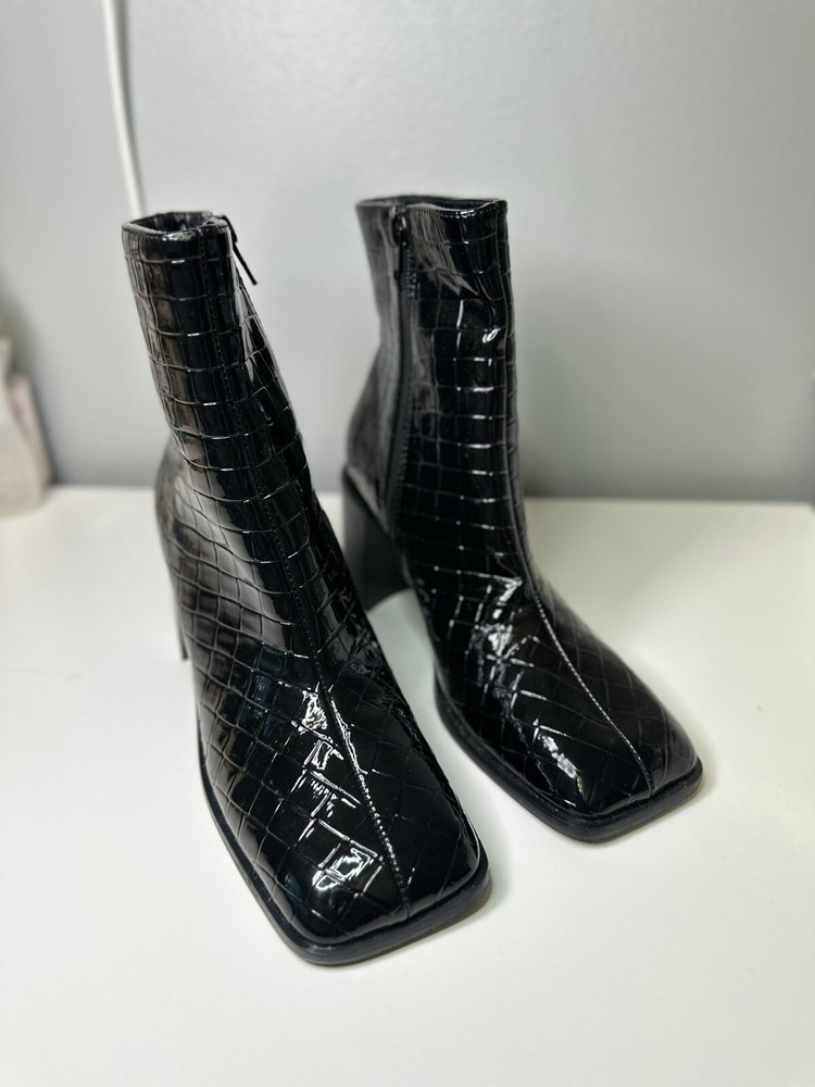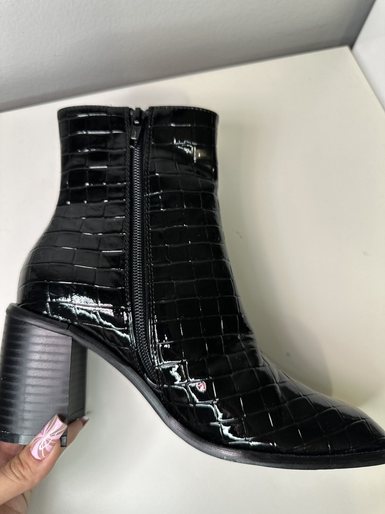 CROC BLOCK HEEL ANKLE BOOTS. Shipped with USPS Ground Advantage.