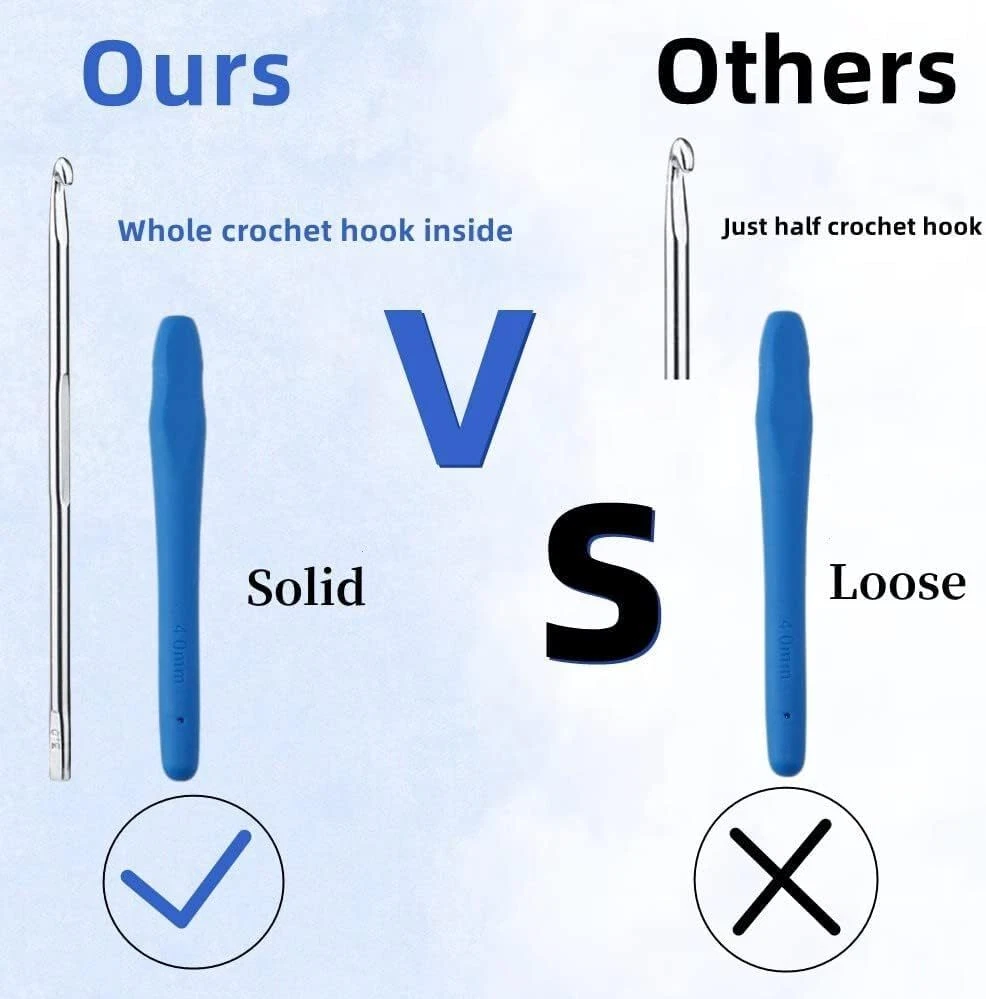 【What you get】This crochet hook kit includes 14 ergonomic crochet hooks,15 big eye sewing needles with 10 stitches markers,sizes are from 2.0mm to 10.0mm,meeting your different needs. 【Comfortable Grip】These crochet hooks for arthritic hands are made of sturdy material with soft handle,high quality for long time use.The crochet set greatly relieve or eliminate pain in the hands, wrists.The comfortable handle provides firm grip and allows you to crochet longer without pain. 【Complete Set】The crochet hooks set includes 14 sizes crochet hooks.Crochet hooks include:2.0mm,2.5mm,3.0mm,3.5mm,4.0mm,4.5mm,5.0mm,5.5mm,6.0mm,6.5mm,7.0mm,8.0mm,9.0mm,10.0mm.Each hook has its engraved size number,easy to recognize and use. 【Crochet Anywhere】All the crochet needles and crochet accessories are stored in the case.Compact and portable,easy to put into backpacks,bags,luggage.You can crochet at home or outdoor in travel. 【Great gift】With different color handles,these crochet hooks are unique and fun.It's a good choice as gift for friends/family members. 【Quality service】If you are not satisfied with the crochet set,please feel free to contact us,we will provide you with the best solution.