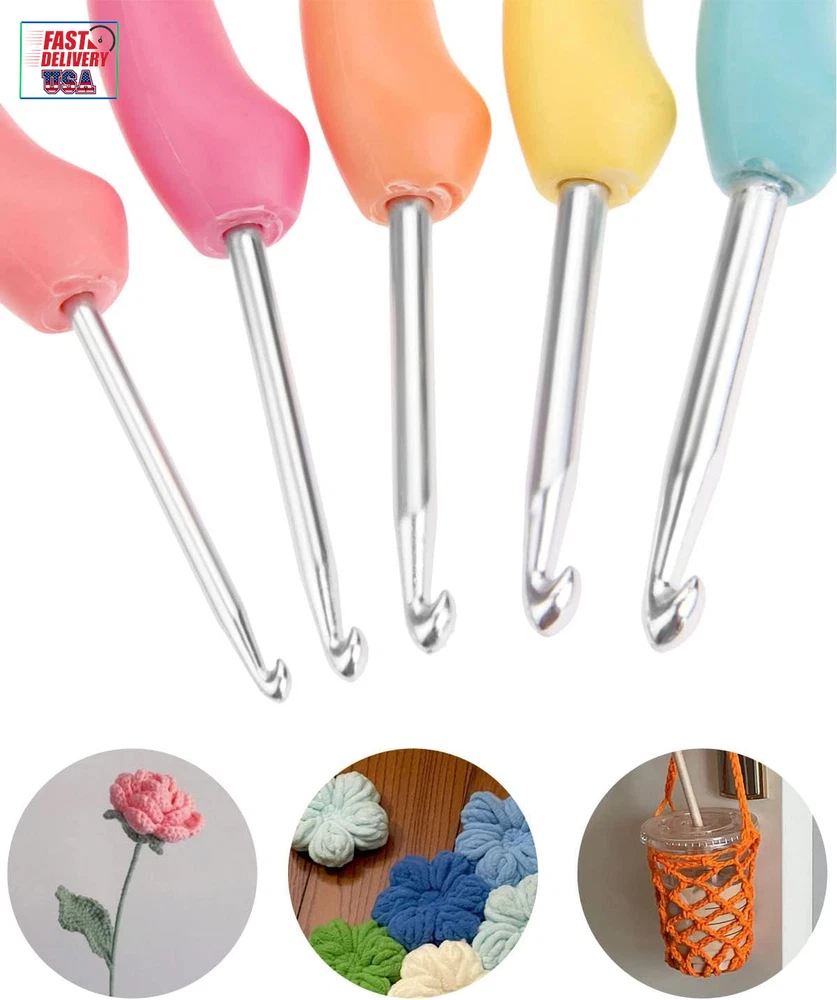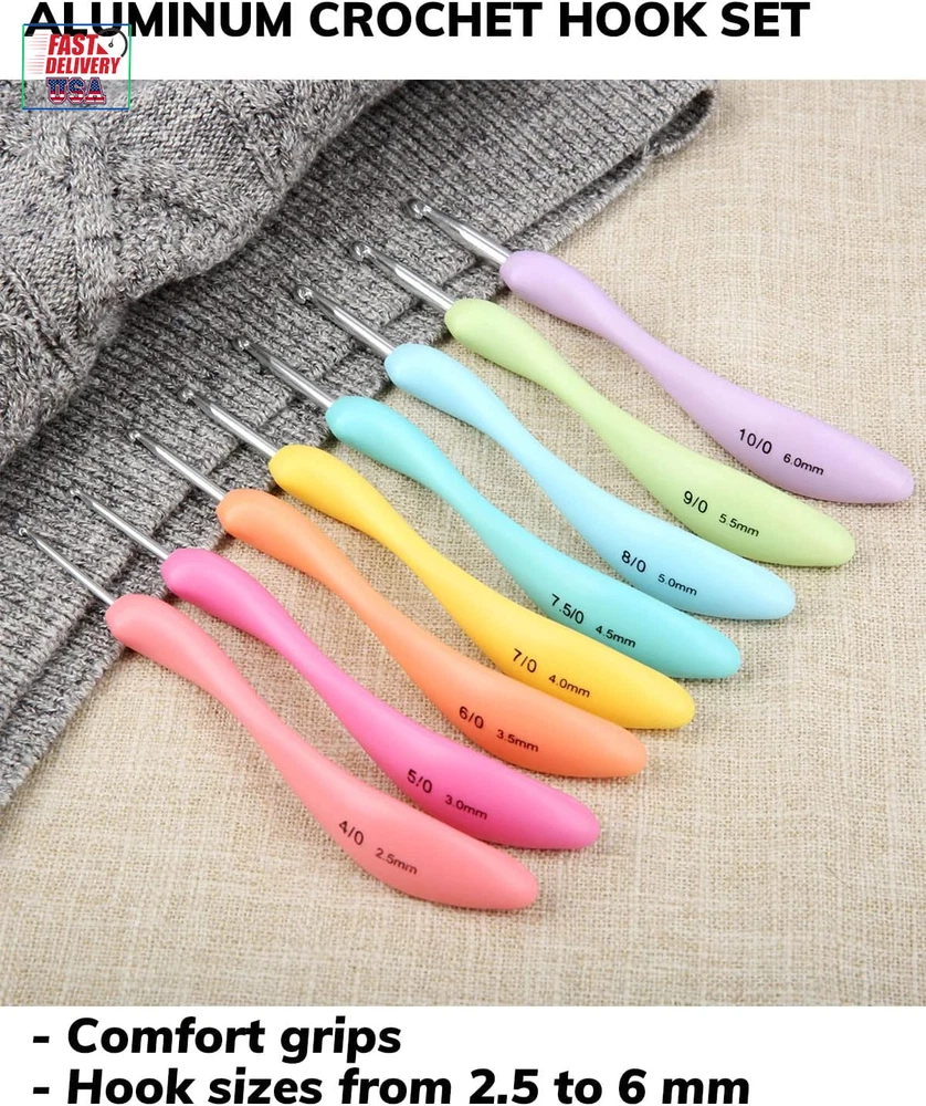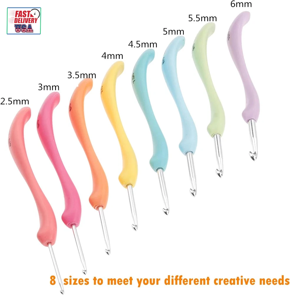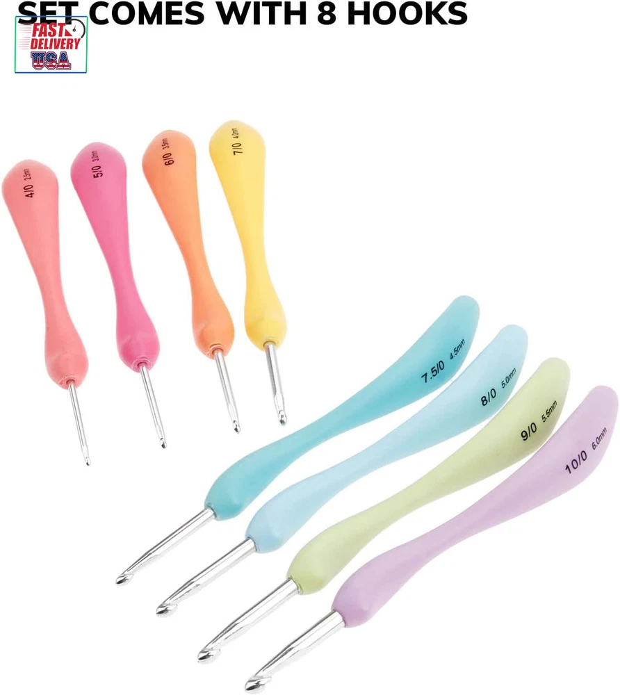Crochet Hooks Set,Large Handle Ergonomic Grip Crochet Hook, 8PCS Aluminum Smooth