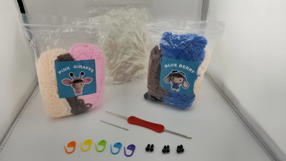 This DIY Crochet Kit is perfect for beginners! This fun and easy-to-follow kit comes with everything you need to create two adorable crochet characters (amigurumi). Whether you're new to crochet or looking for a relaxing hobby, this kit provides a great way to learn while making something super cute! In the kit comes: - Detailed instructions to guide you through each step. - All necessary yarn and stuffing to complete both characters. - All tools and accessories needed to complete the project. This is a fun, engaging project that’s perfect for all ages and a perfect Christmas gift! Unleash your creativity, reduce stress, and enjoy the satisfaction of making these two charming figures by hand! Grab yours now and start your crochet journey today! We have over 200 crochet kits in stock and offer a bulk discount if you buy more than 10. =================================================================== ¡Este kit de crochet DIY es perfecto para principiantes! Este kit divertido y fácil de seguir viene con todo lo que necesitas para crear dos adorables personajes de crochet (amigurumi). Ya sea que seas nuevo en el crochet o estés buscando un pasatiempo relajante, este kit es una excelente manera de aprender mientras haces algo súper lindo. En el kit encontrarás: - Instrucciones detalladas para guiarte en cada paso. - Todo el hilo y el relleno necesarios para completar ambos personajes. - Todas las herramientas y accesorios necesarios para completar el proyecto. ¡Es un proyecto divertido y atractivo que es perfecto para todas las edades y un regalo de Navidad ideal! Desata tu creatividad, reduce el estrés y disfruta de la satisfacción de hacer estas dos encantadoras figuras a mano. ¡Obtén el tuyo ahora y comienza tu aventura en el crochet hoy mismo! Tenemos más de 200 kits de crochet en stock y ofrecemos descuentos por compras en grandes cantidades si compras más de 10.