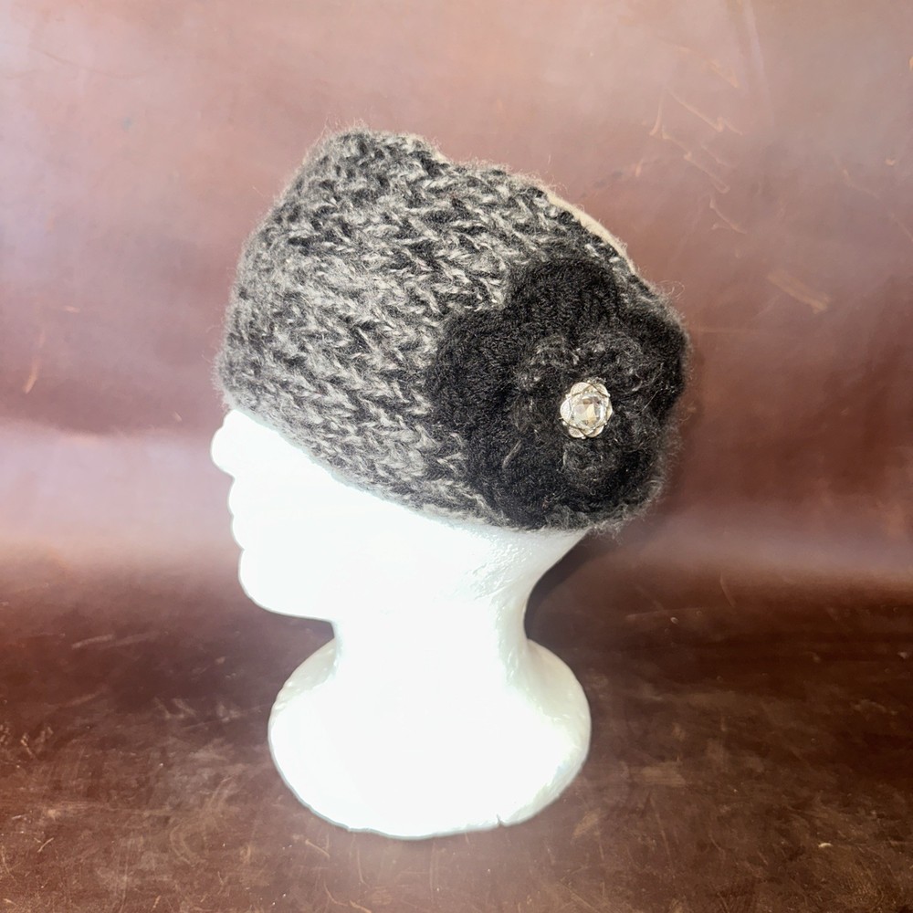 This Ear Warmer Crocheted is a headband designed for women in one size fits all. Made of polyester and acrylic materials in black and grey colors, it features a decorative flower with bling accents, perfect for winter activities like skiing. The crochet design adds a unique touch to this stylish and functional accessory that will keep your ears warm and stylish during cold weather.