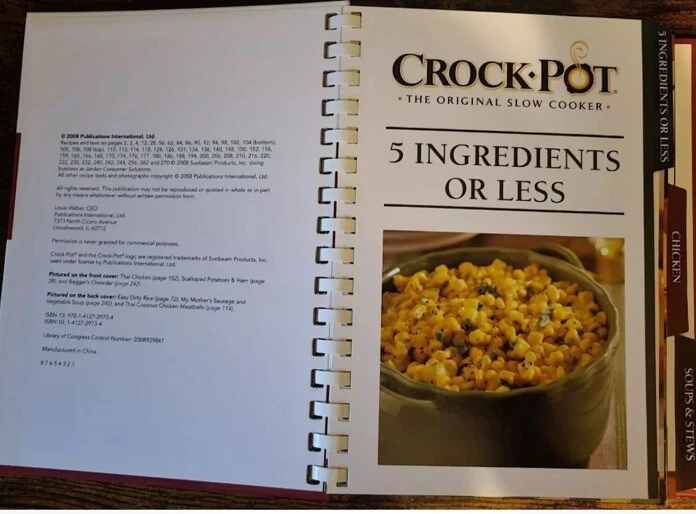 HomeCrockPot Orig Slow Cooker 3 Books in 1, Chicken 5 Ingredients Or Less Pre-Owned