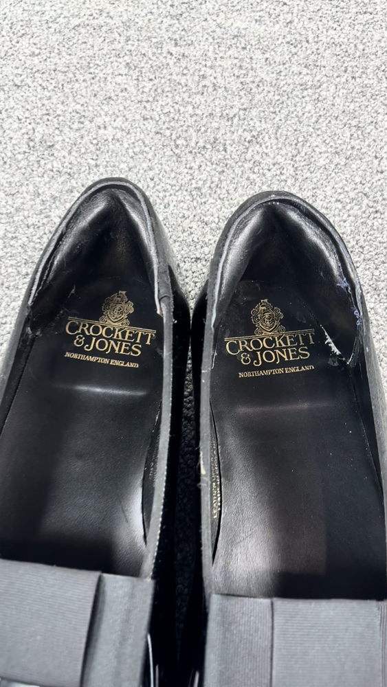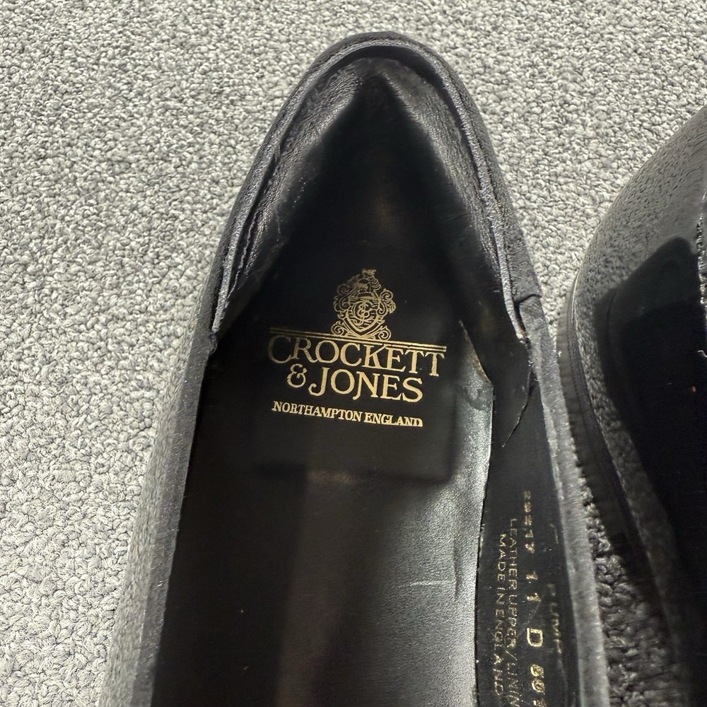 Crockett Jones Men Tux Opera Patent Leather Pump Shoes 10.5 D England *Altered*. Item is in good preowned condition normal signs of use as pictured. The shoes have been altered to fit like a US 10.5. There is additional material professionally stitched into the ankle area to make the fit smaller, see photos/ video