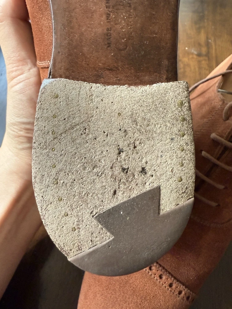 Outsole Material: Leather Upper Material: Suede Country of Origin: United Kingdom Insole Material: Leather Color: Brown gtin13: Does not apply UPC: Does not apply Model: Cap toe Department: Men Closure: Lace Up UK Shoe Size: 8 US Shoe Size: 9 Brand: Crockett & Jones Style: Brogue Toe Shape: Round Toe Features: Cap Toe Lining Material: Leather Type: Dress Shoe Width: D