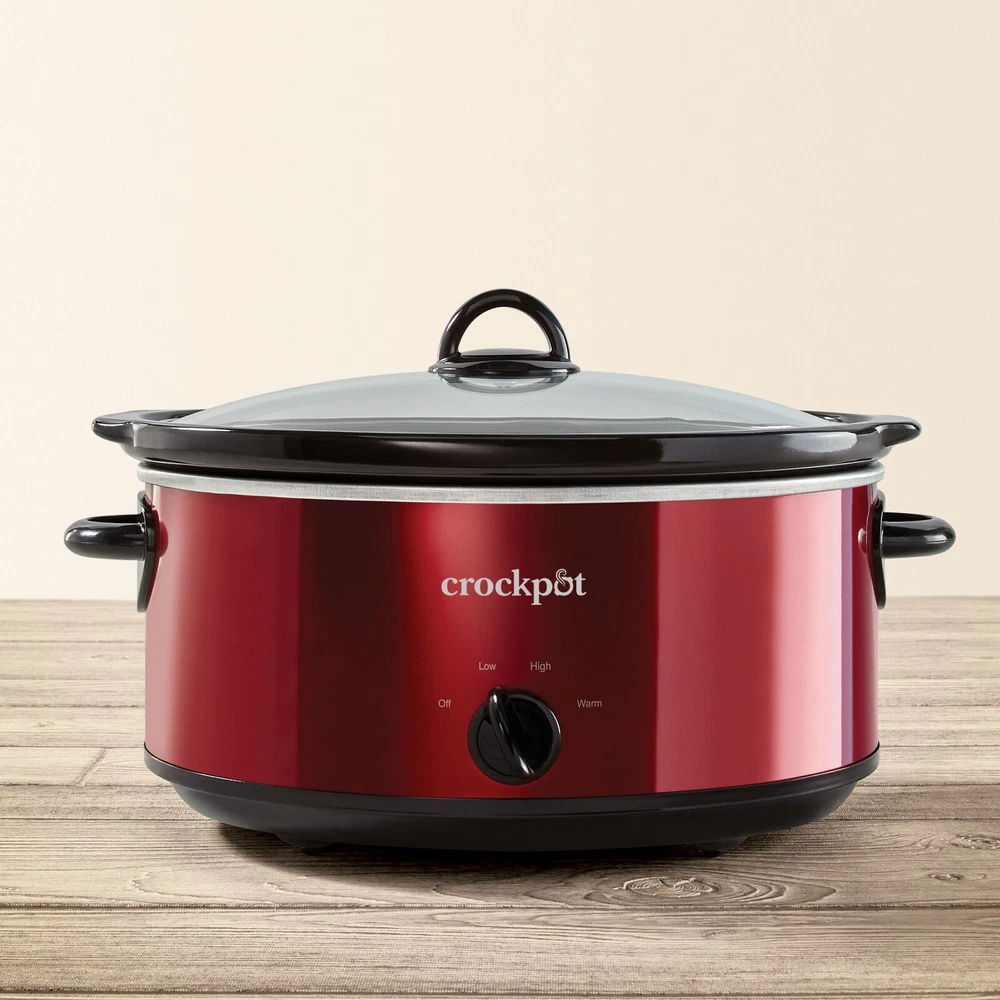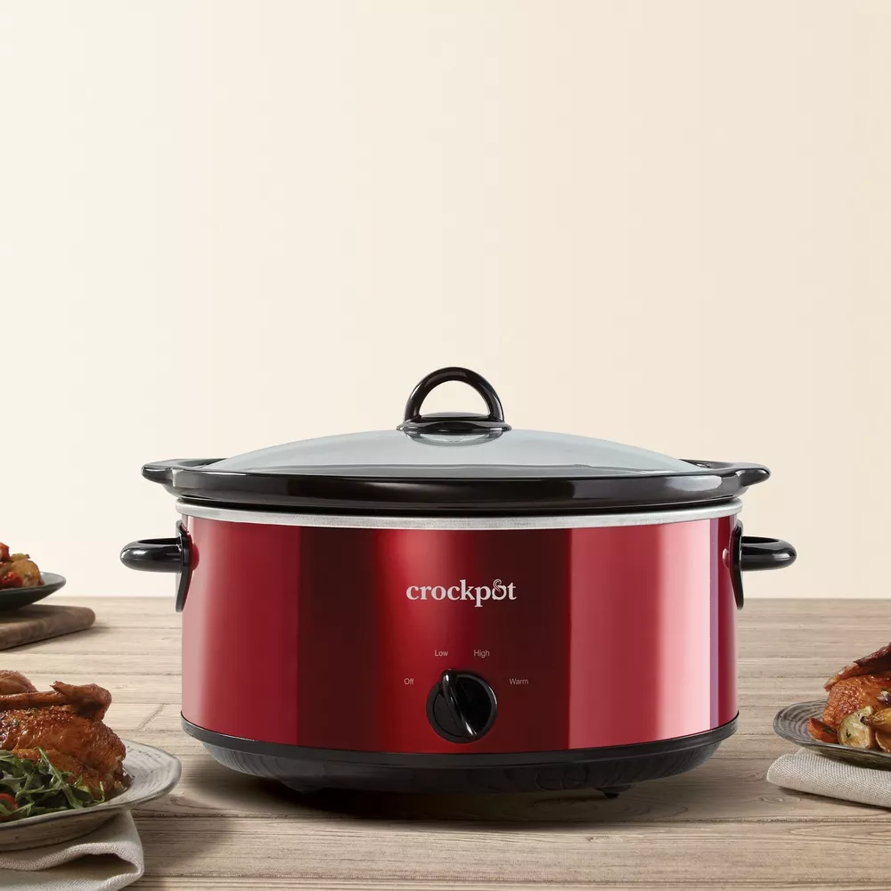 Crockpot 7-Quart Manual Slow Cooker, Red Stainless Steel