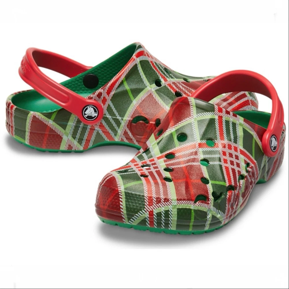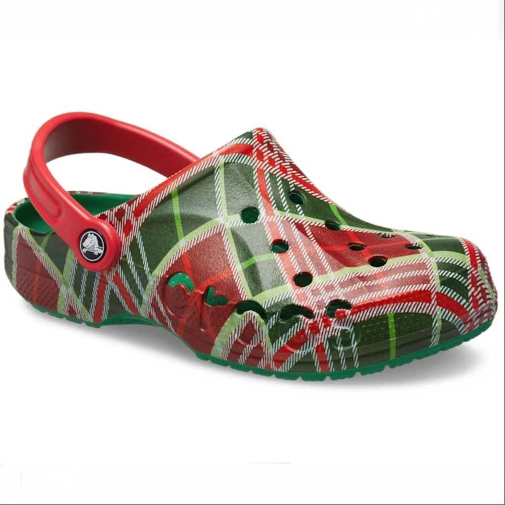 Crocs Baya Holiday Plaid Clogs Christmas Red Green Comfort Sandals Mens Size 13