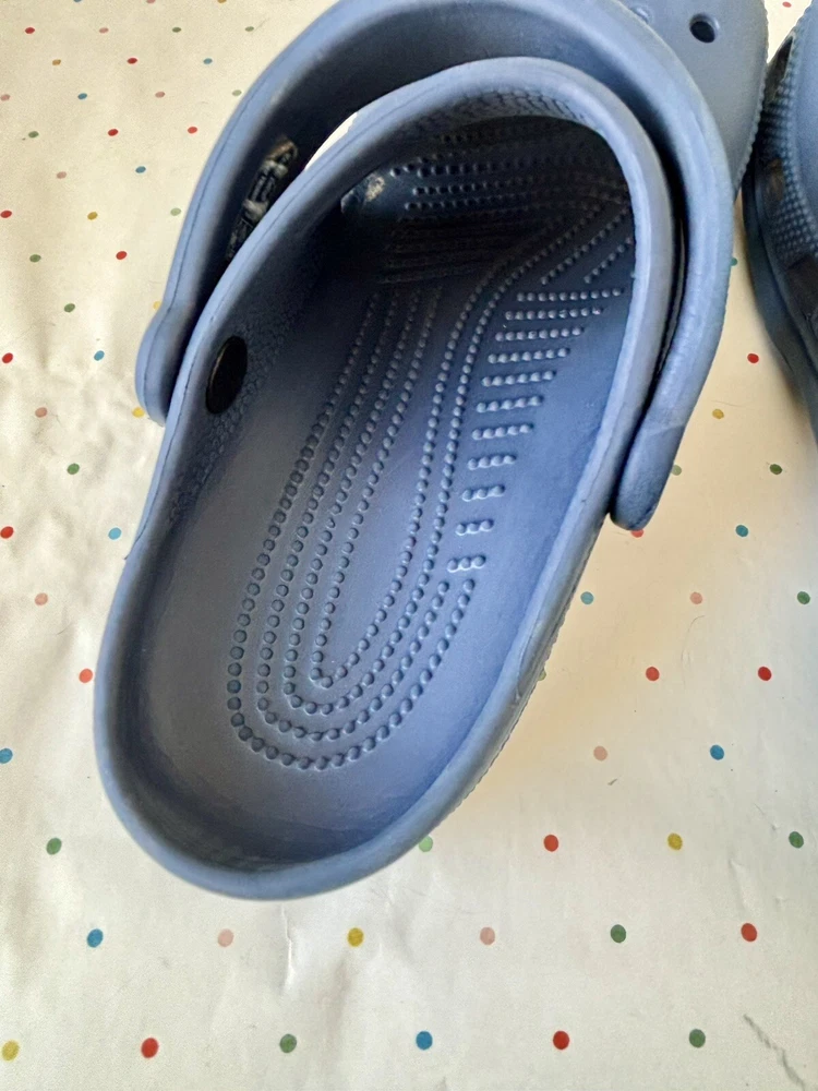 The Crocs Bistro Navy Blue Shoes Sandals are unisex clogs in size M4 W6, suitable for casual wear. They feature a slip-on style with a round toe shape and Crocs logo accents. Made from Croslite material, these comfortable clogs are ideal for summer, fall, and spring seasons. The classic design and solid blue color make them a versatile choice for teens looking for a stylish and easy-to-wear shoe option.