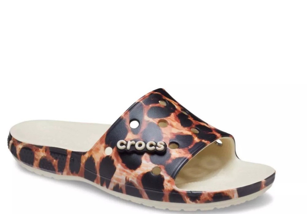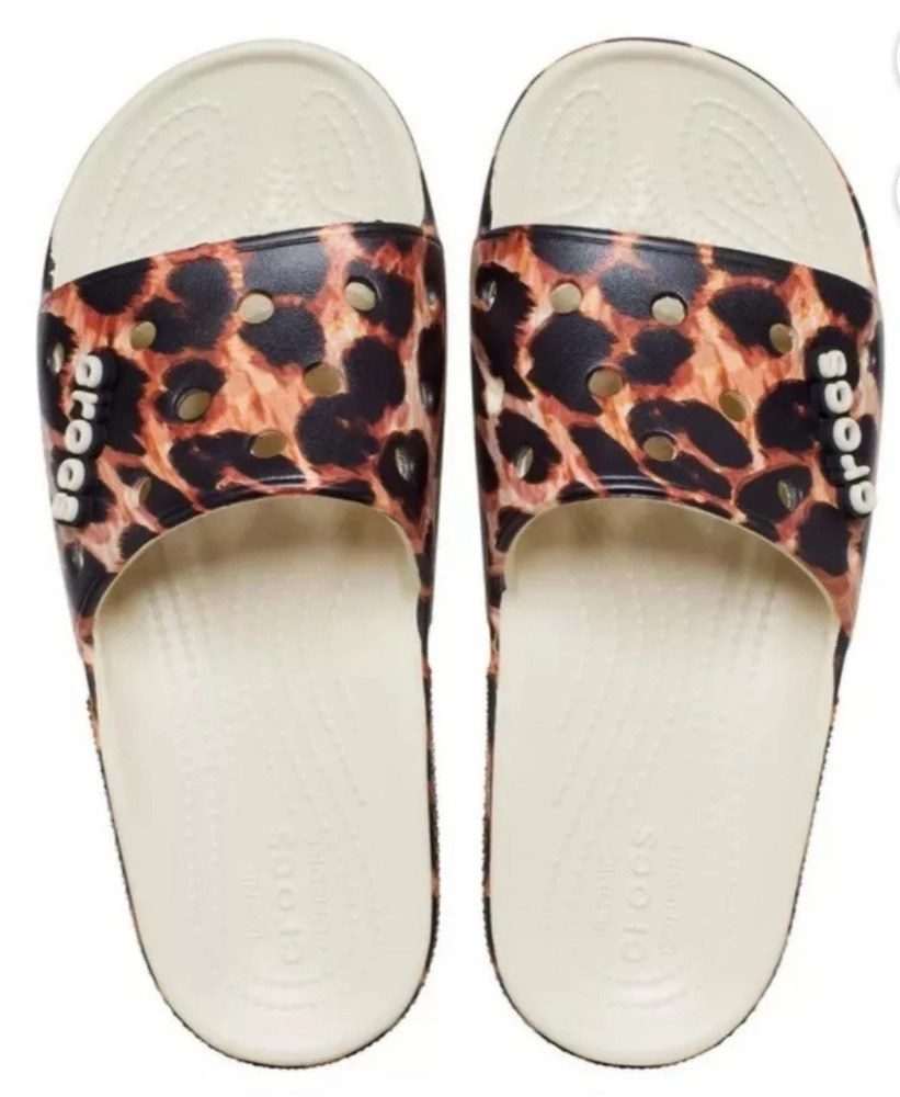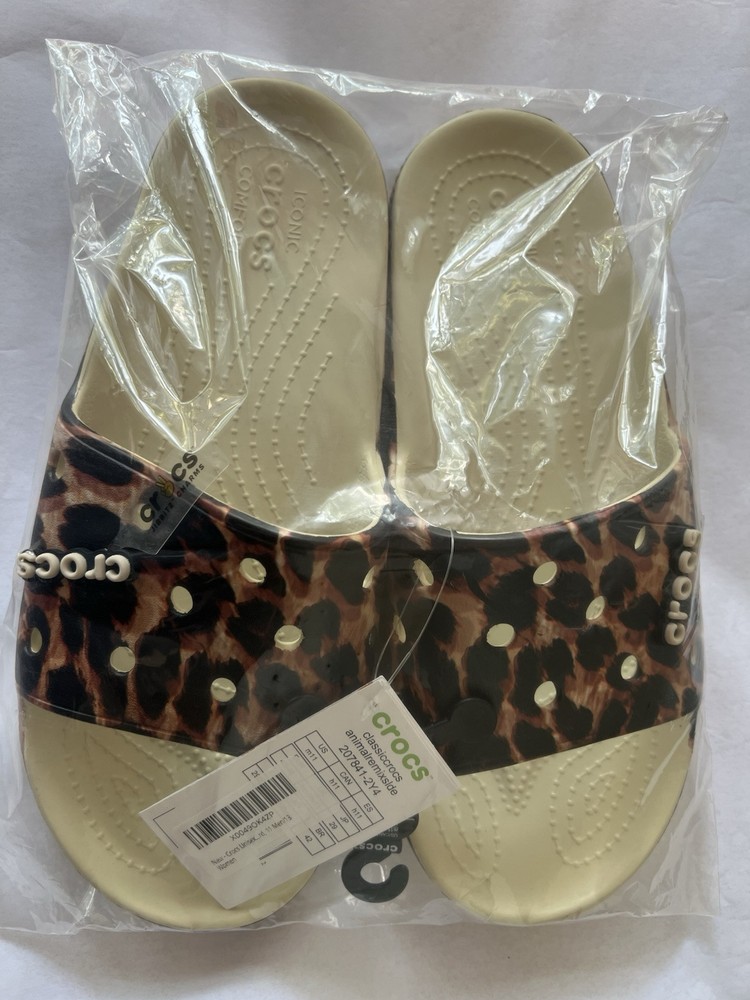 Crocs Bone/Leopard Print Remix Slide Animal Print Sandals Mens 11