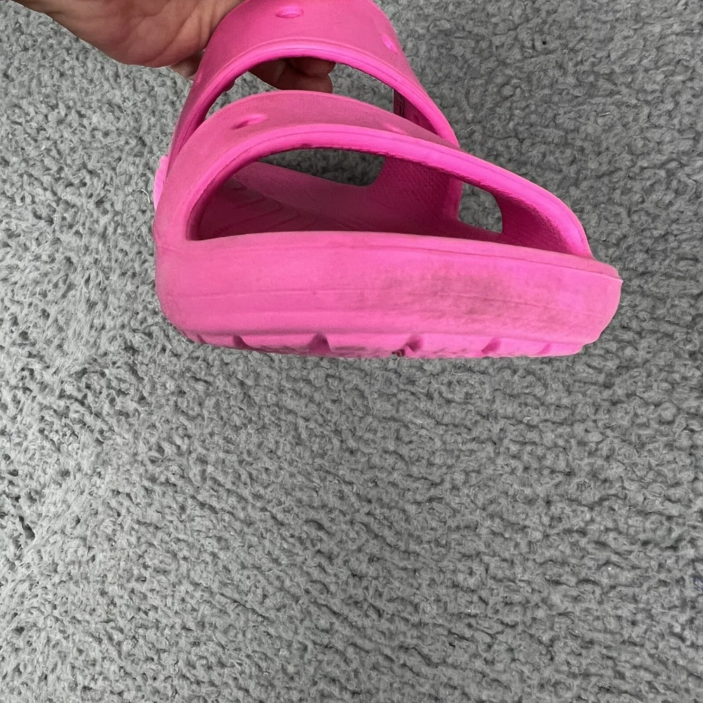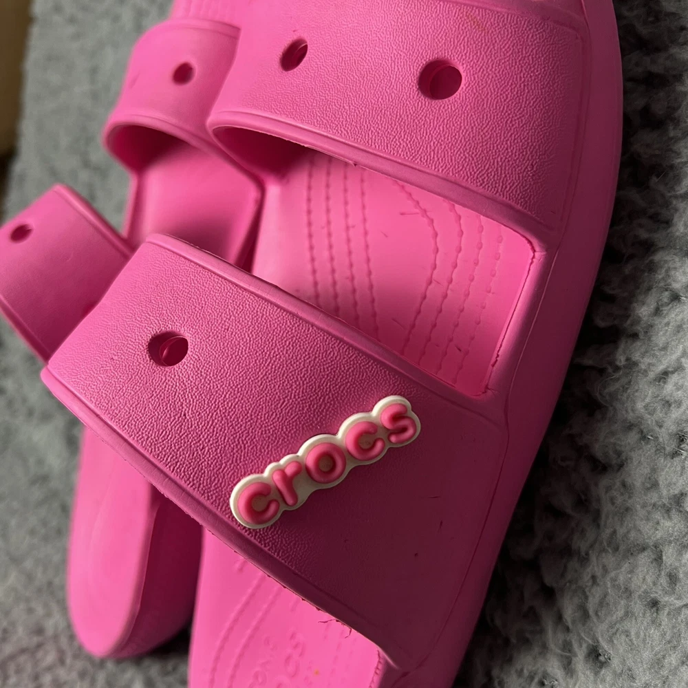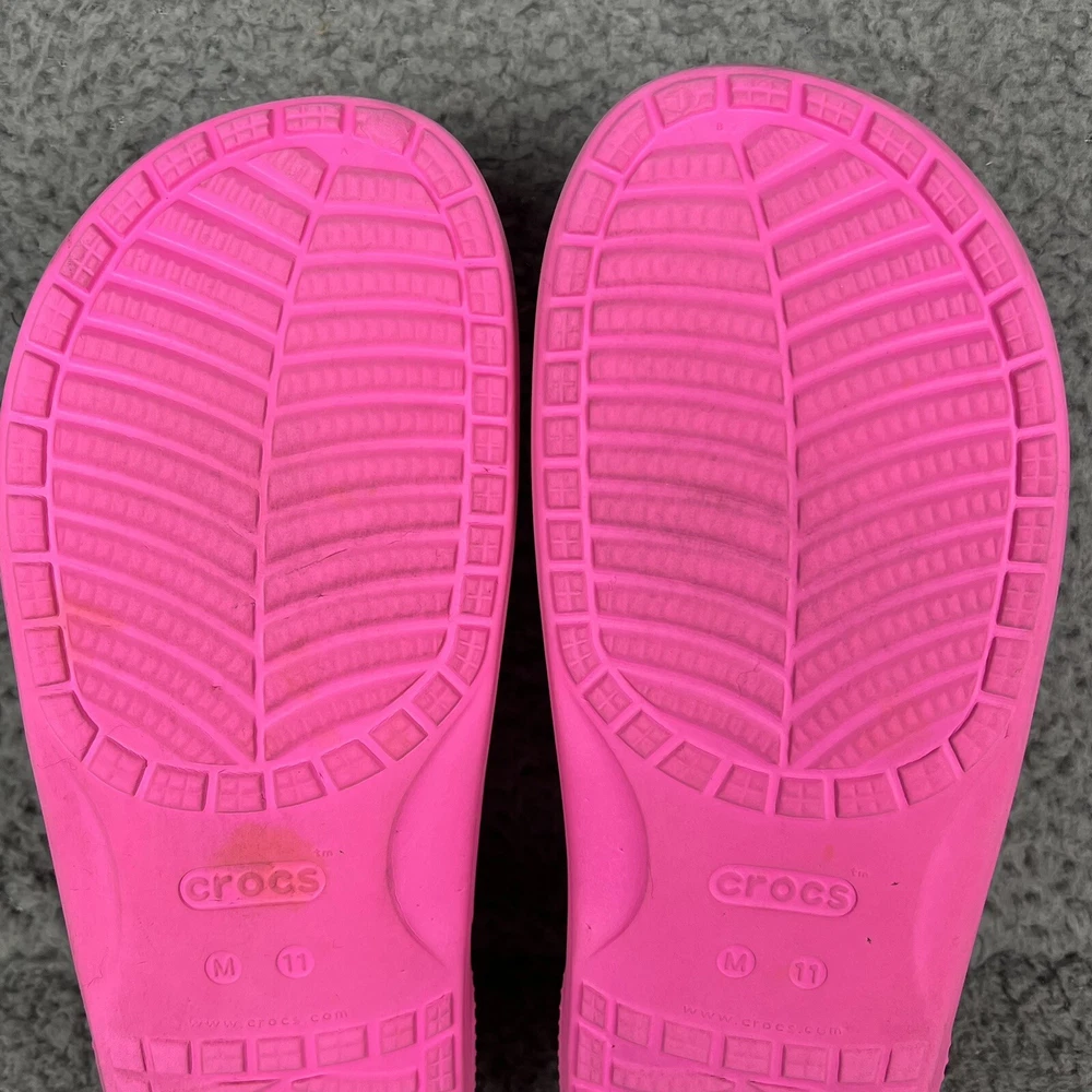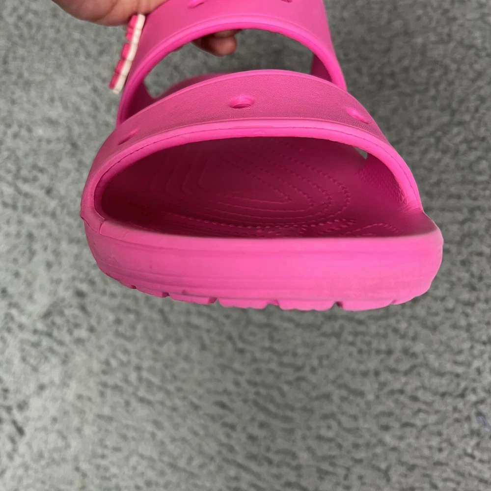 Slide into summer with these Crocs Classic 2-Strap Sandal Slides in Bright Pink. Perfect for travel, activewear, and casual occasions, these slip-on sandals feature a flat heel and a rubber outsole for comfort and durability. The synthetic upper material is waterproof, making them perfect for those unexpected rainy days. With accents of a strap and logo, these sandals have a classic theme that is perfect for any outfit. The Crocs Classic 2-Strap model is designed for women with a US shoe size of 13 and men with a size of 11. Made in Vietnam, these sandals are not handmade and are not customized. Get your hands on these stylish slides today and enjoy the summer, fall, and spring seasons in style.