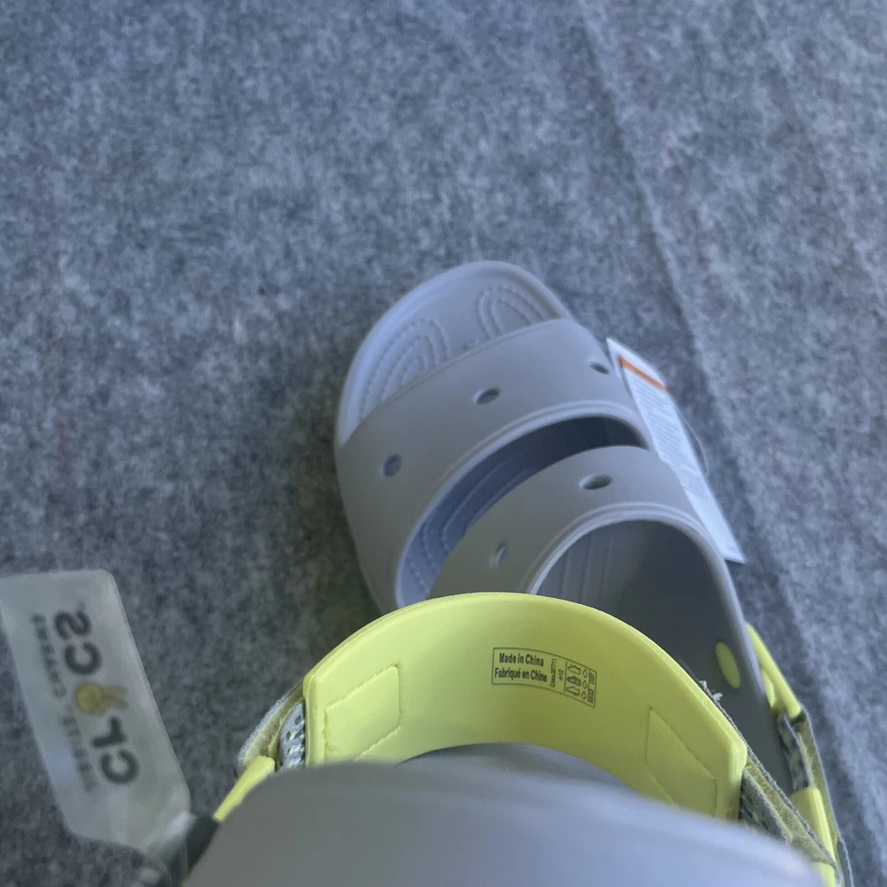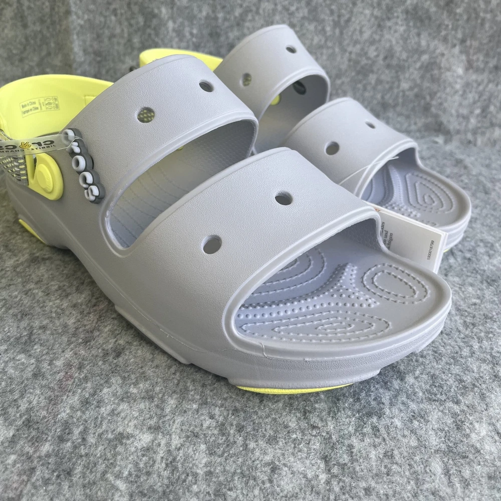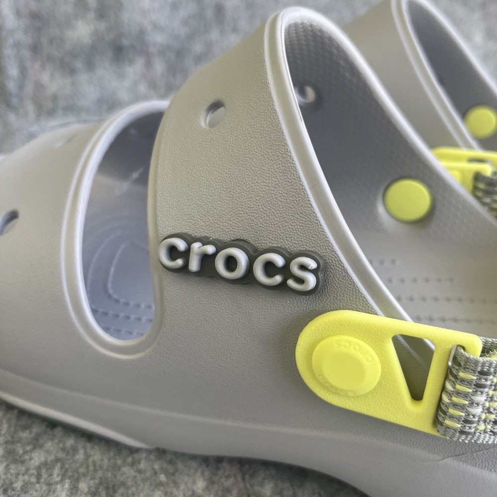 Pattern: Solid Model: Crocs Classic All Terrain Country/Region of Manufacture: Vietnam US Shoe Size: 12 Department: Men UK Shoe Size: M9/W10 Color: Gray Features: Adjustable Style: Sandal Brand: Crocs Upper Material: Croslite