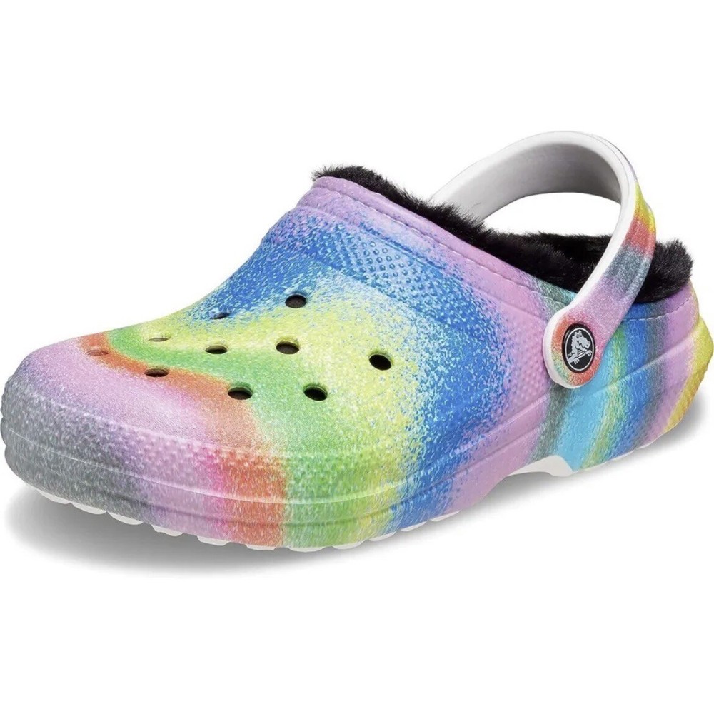 Crocs Classic Black Lined Clog Slip On Spray Dye White Men’s Size 12 NEW