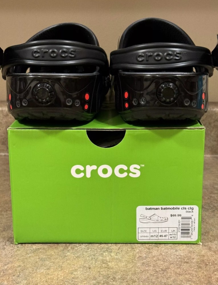 Upper Material: Synthetic Character: Batman Color: Black Model: Crocs Batman Batmobile Type: Casual US Shoe Size: various Brand: Crocs Features: Breathable, Comfort, Lightweight, Limited Edition Theme: Superhero Style: Clog Department: Men