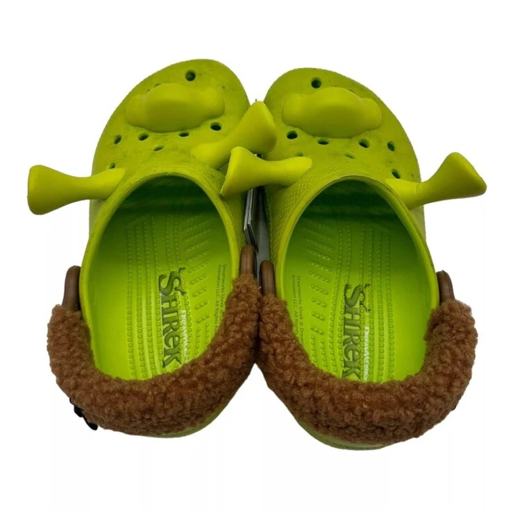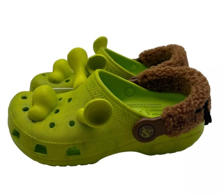 Introducing the Crocs Classic Clog Dreamworks Shrek Shoe in Lime Green, model number 209378-3TX. This comfortable and stylish shoe is perfect for your little one's casual occasions, featuring a slip-on closure and low-top shoe shaft style. The shoe is made from high-quality rubber and is designed to provide standard shoe width. The shoe's unique design, featuring Shrek character and Disney theme, makes it a must-have for your little one's collection.