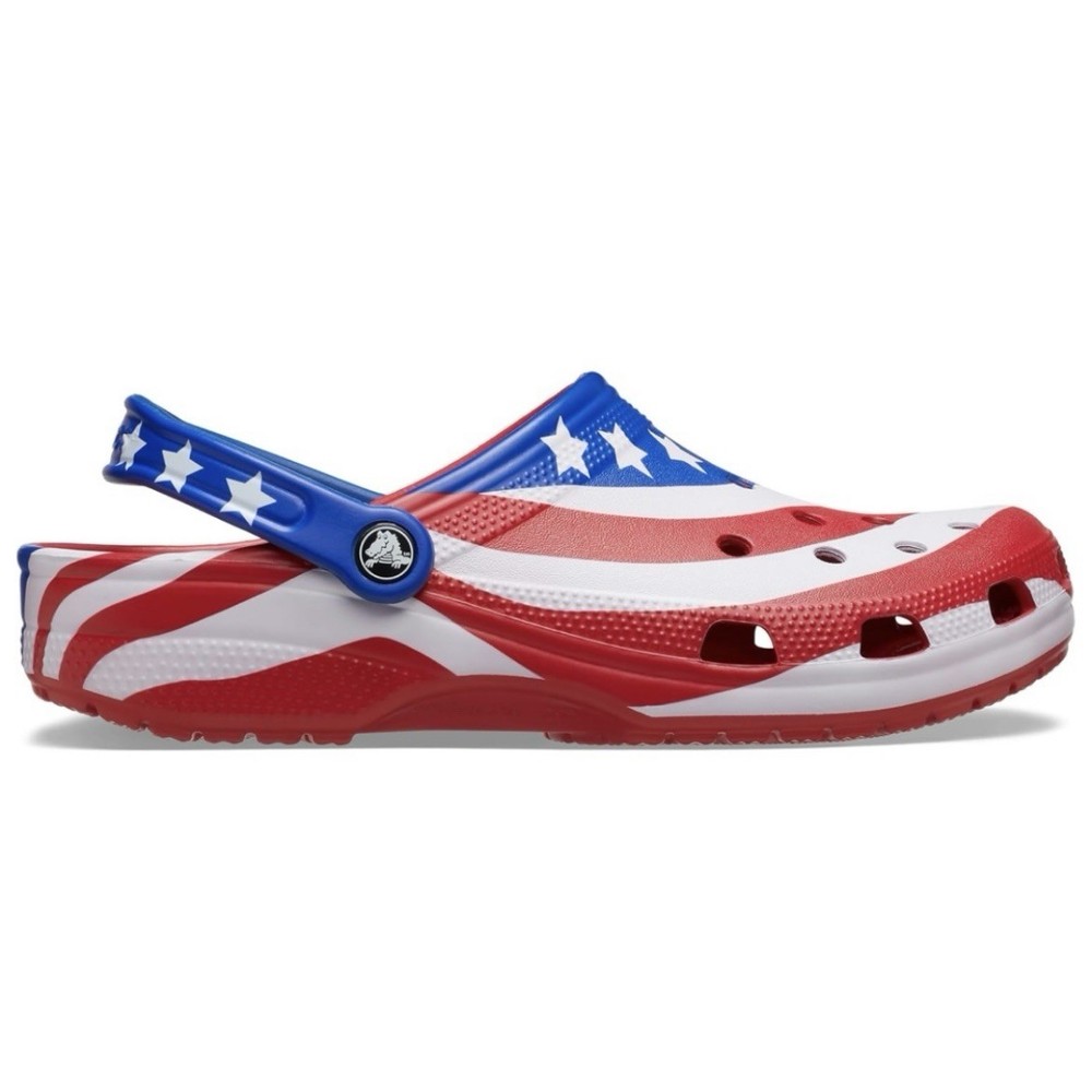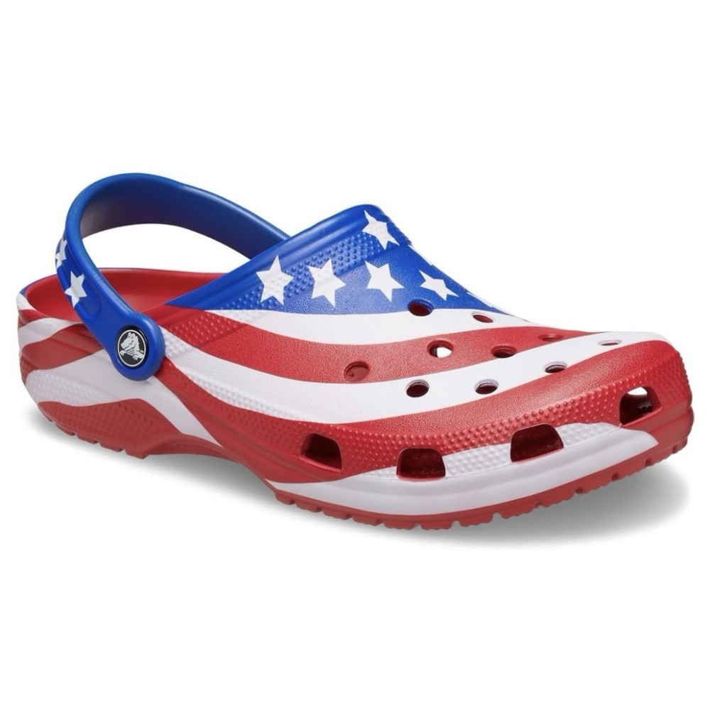 Crocs Classic Clog Sandal Summer USA Patriotic Red White Blue Mens Size 9 NEW - Womens Size 11