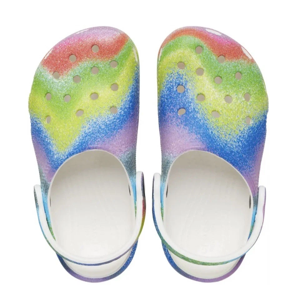 Crocs Classic Clog Slip Ons Spray Dye Multi White Men’s Size 9 - Women’s 11