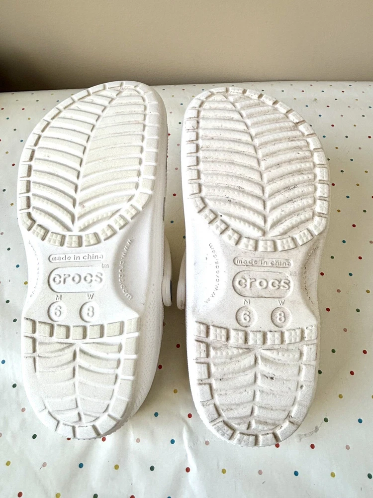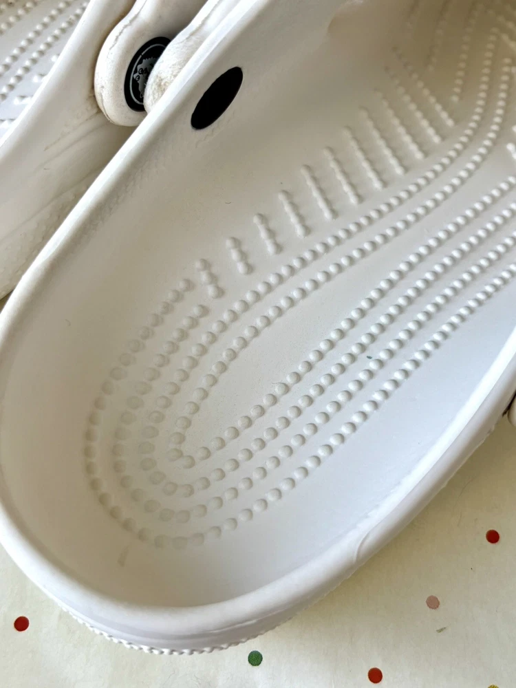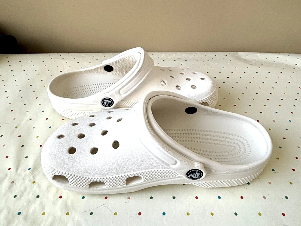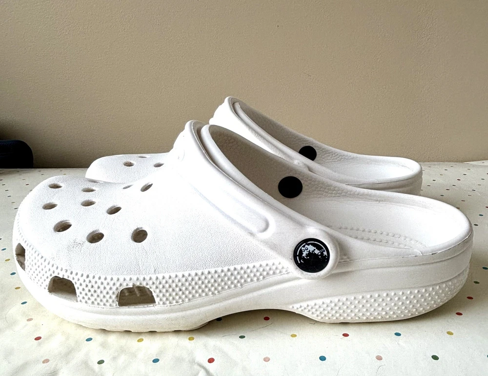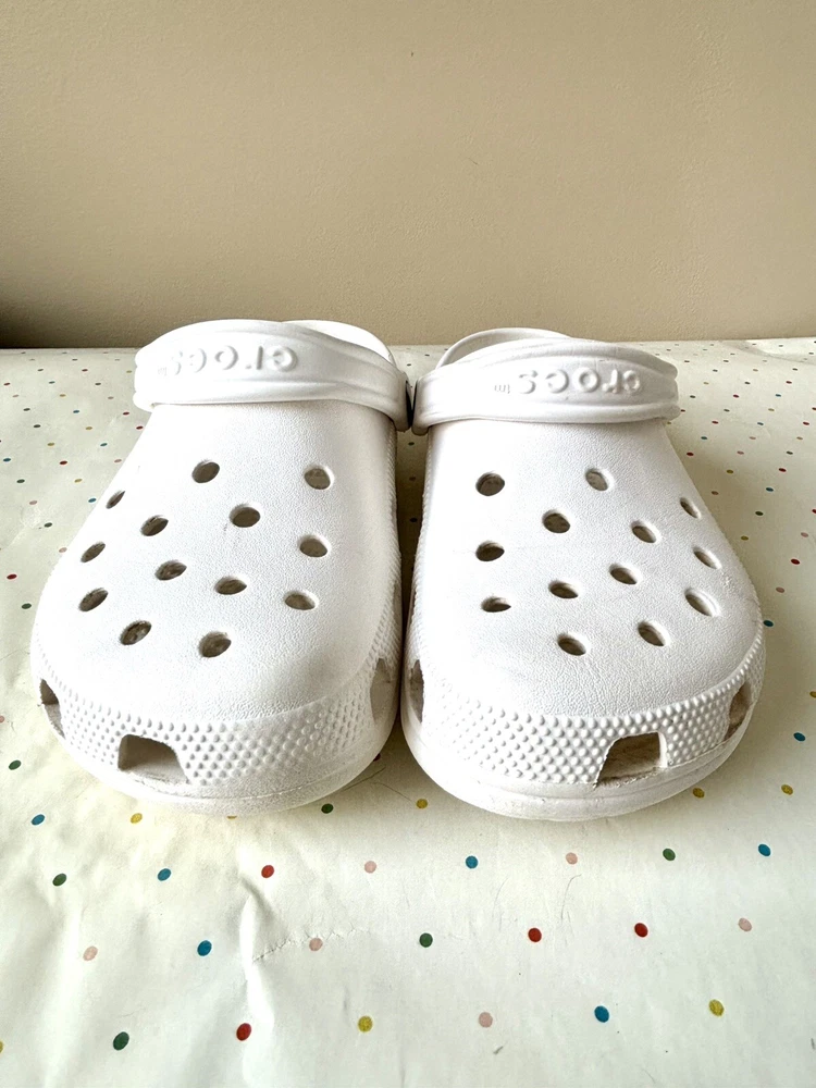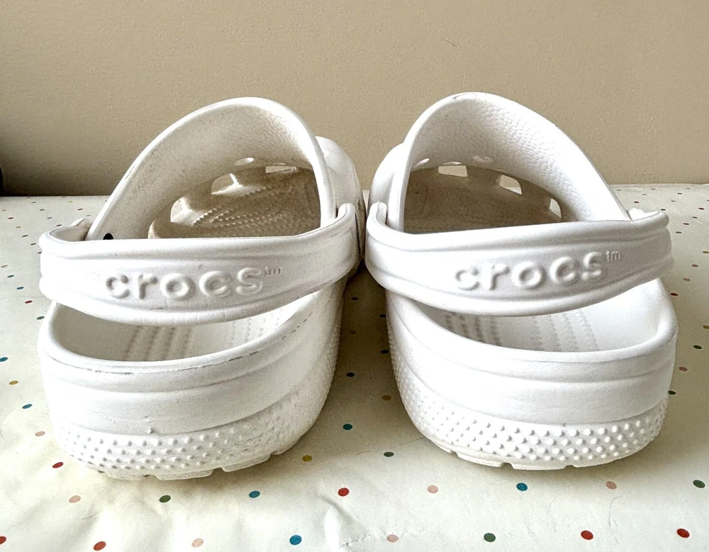 The Crocs Classic Clog is a unisex slip-on sandal designed for ultra-light comfort, featuring a solid white color with a modern logo accent. Made from Croslite material, these sandals are water-friendly and perfect for travel or casual wear during the summer, fall, and spring seasons. With a lightweight design and standard shoe width, these Crocs are ideal for those looking for a versatile and easy-to-wear footwear option.