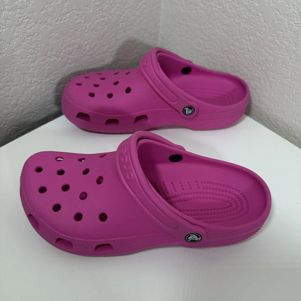 Crocs Classic Clogs Magenta Pink Unisex Christmas Hanukkah Womens Size 9 Mens Size 7 Pre-loved & in great used condition. Some minimal staining on bottom soles. See photos for close ups. Freshly cleaned/sanitized & ready to ship!