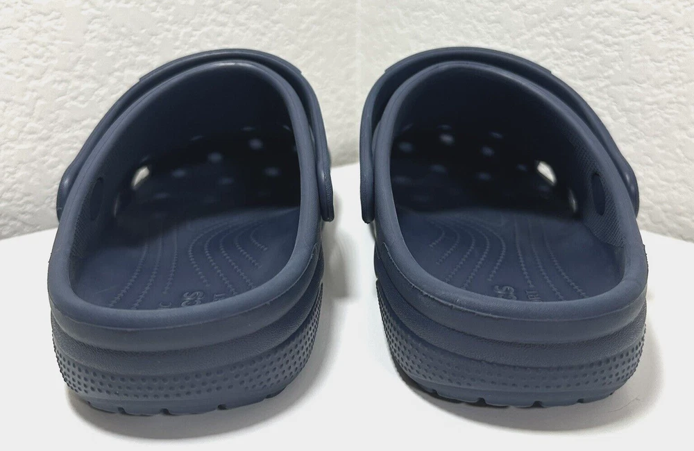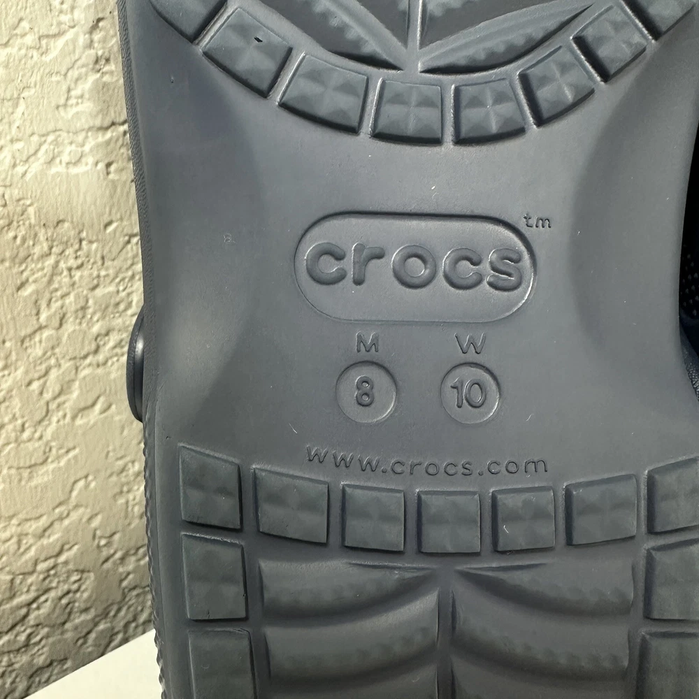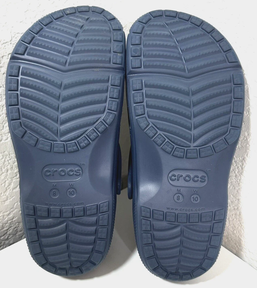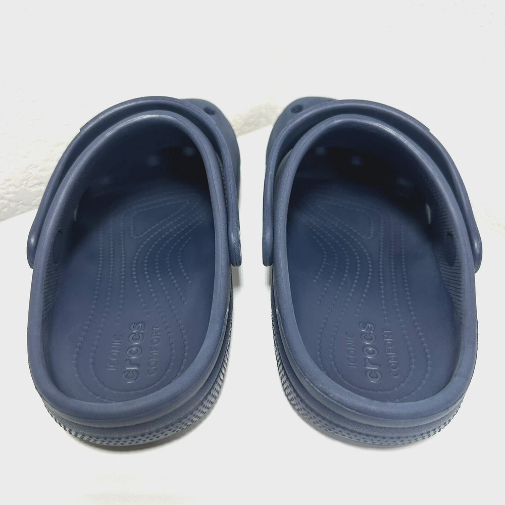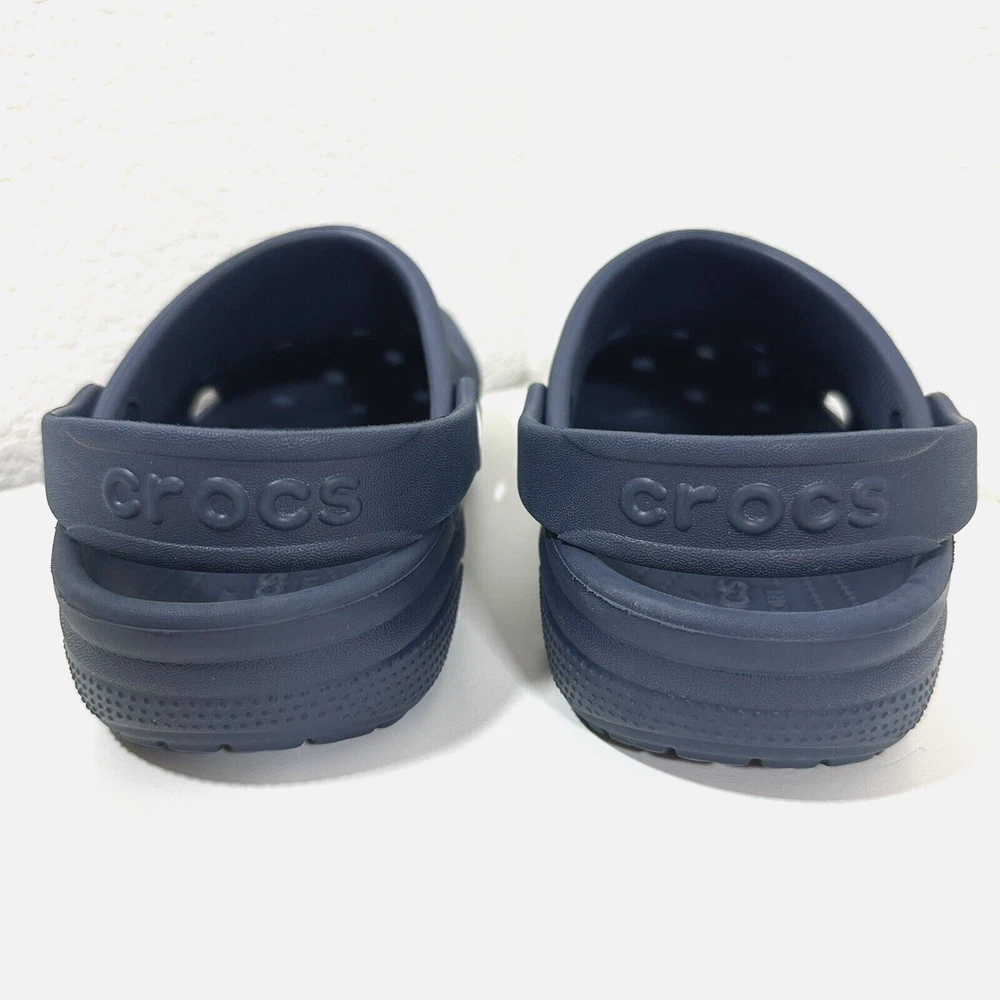 Crocs Classic Clogs Navy Unisex Christmas Hanukkah EUC Womens Size 10 Mens Size 8 Pre-loved & in excellent used condition. See photos for close ups. Freshly cleaned/sanitized & ready to ship!