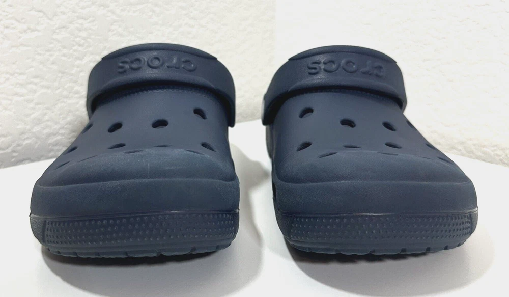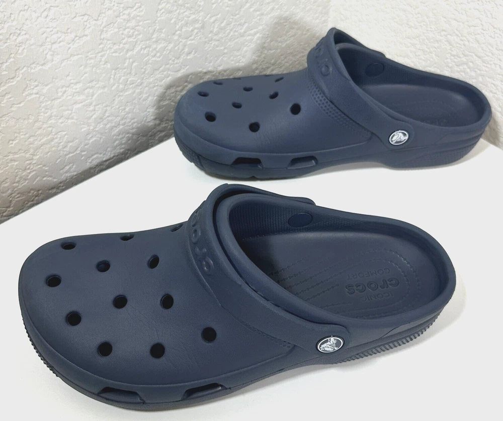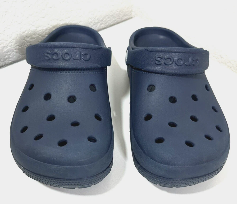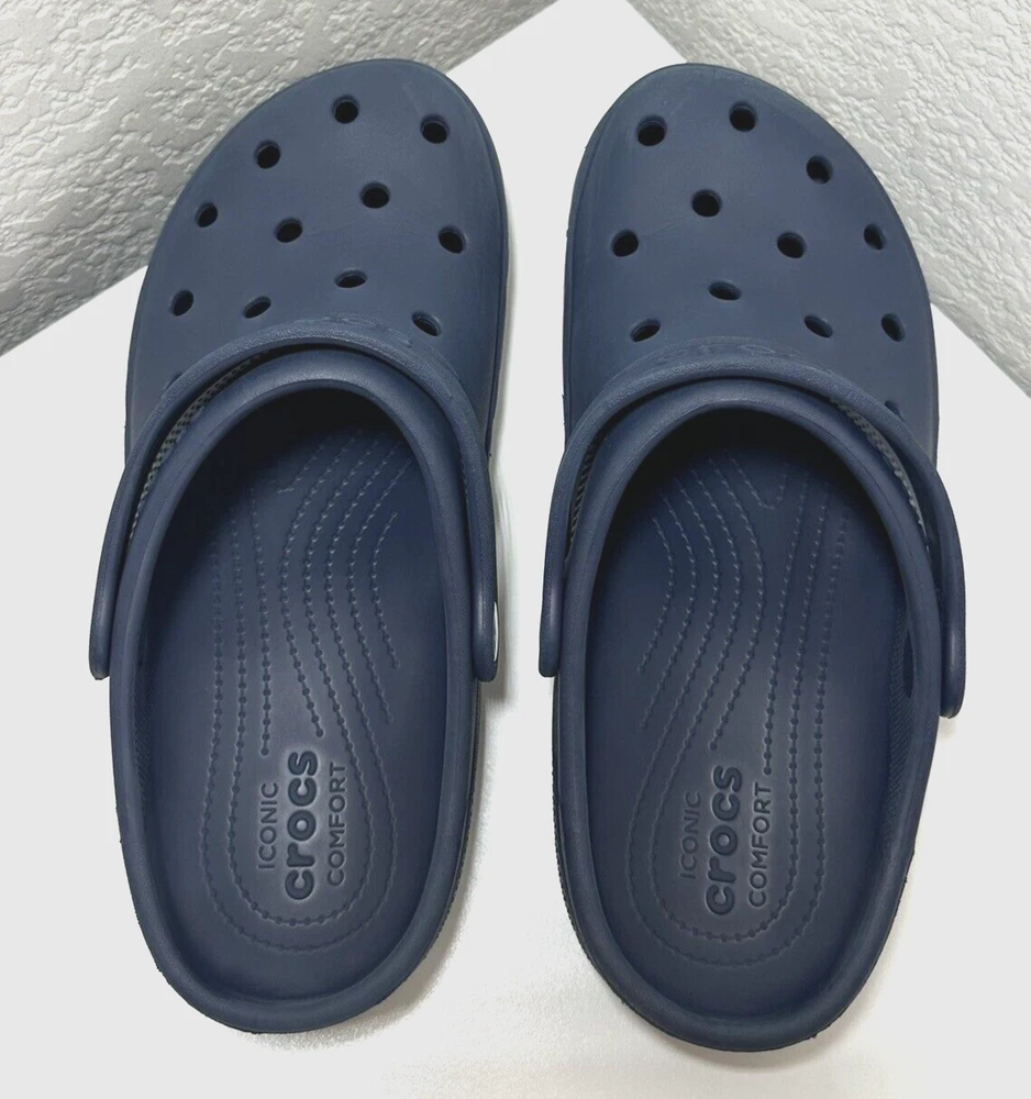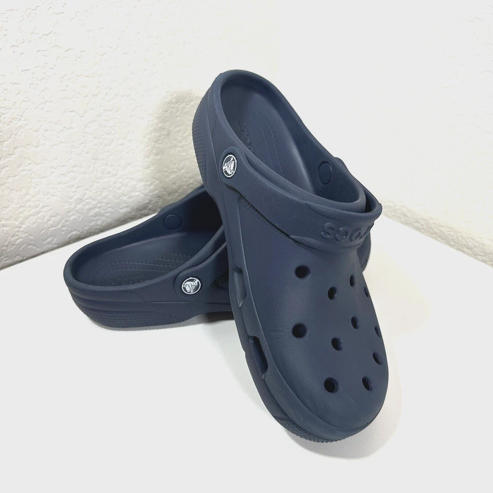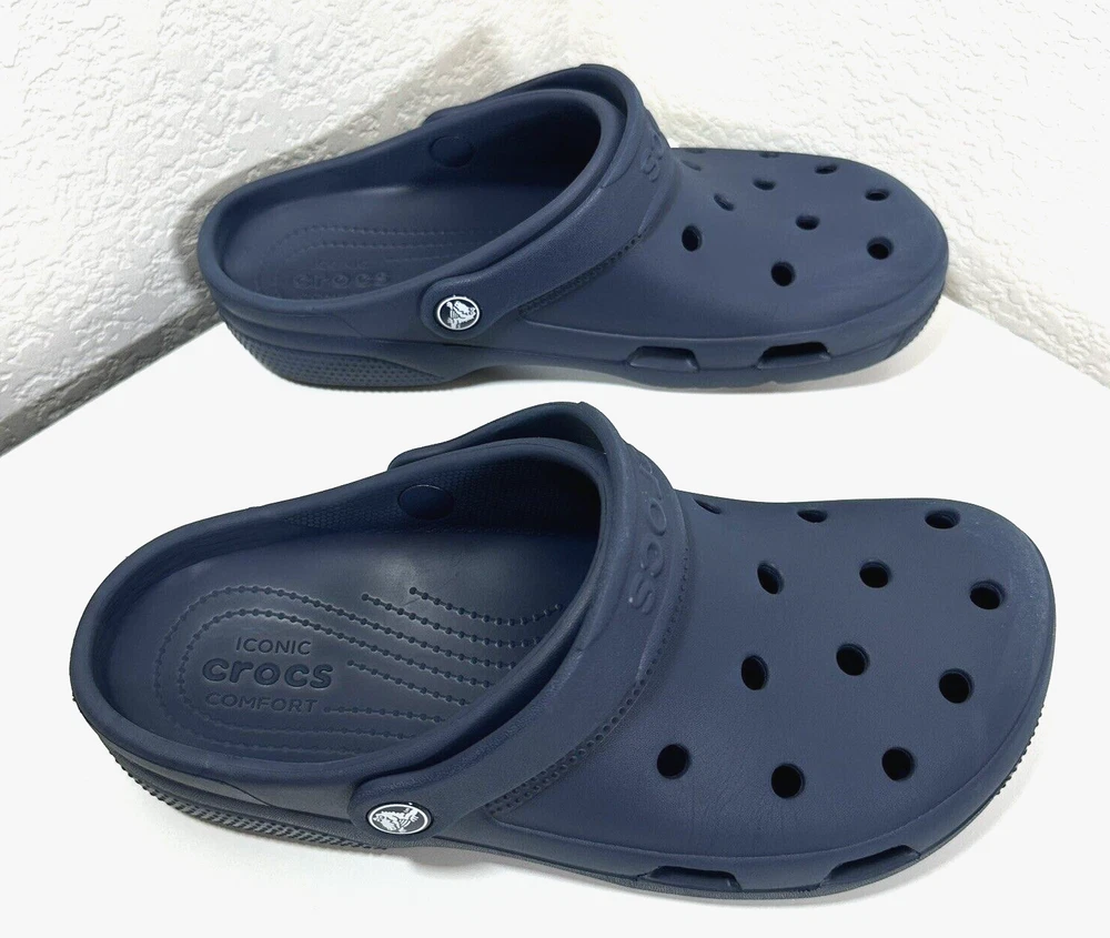 Crocs Classic Clogs Navy Unisex Christmas Hanukkah EUC Womens Size 10 Mens Size 8 Pre-loved & in excellent used condition. See photos for close ups. Freshly cleaned/sanitized & ready to ship!