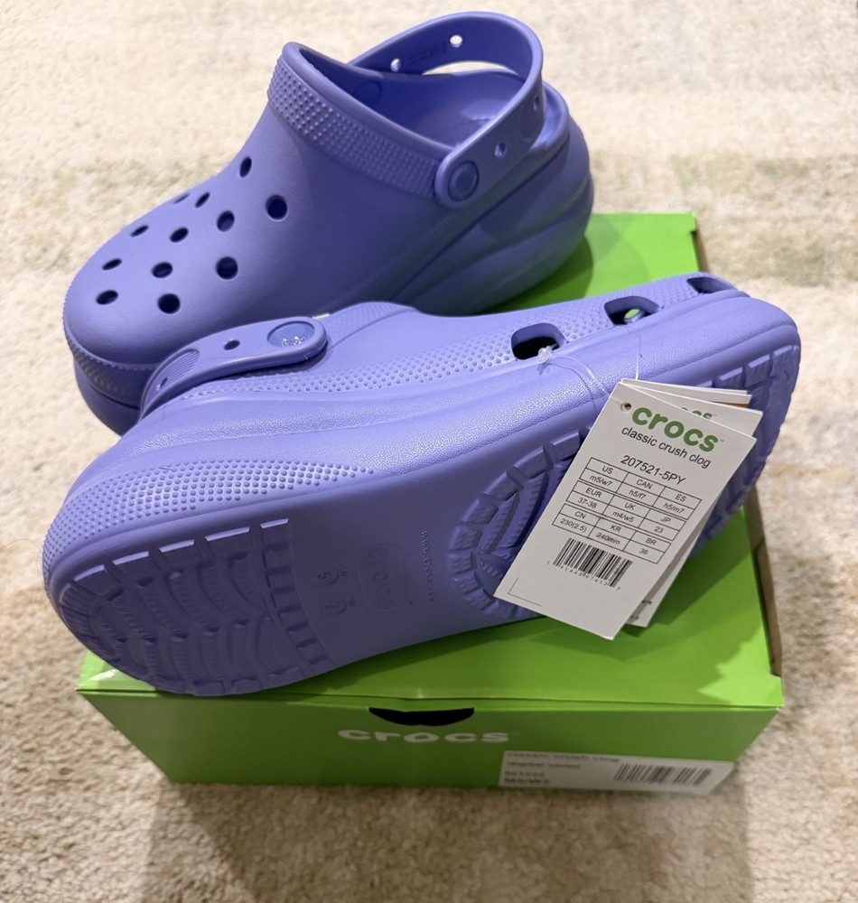 Brand New - In Box Thermoplastic (EVA) upper, lining, and insole. Iconic Crocs Comfort™ offers lightweight performance, flexibility, and 360-degree comfort. Slip-on style with a slingback strap. Jibbitz™ holes on the upper and the pivoting backstrap. Closed round toe silhouette. Imported. Measurements: Heel Height: 2.14 in. Platform Height: 1.43 in. Single Shoe Weight: 14.11 oz.
